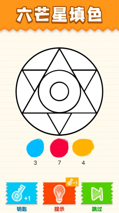 游戏共有三个不同的玩法,涂色,拼图,旋转拼图。