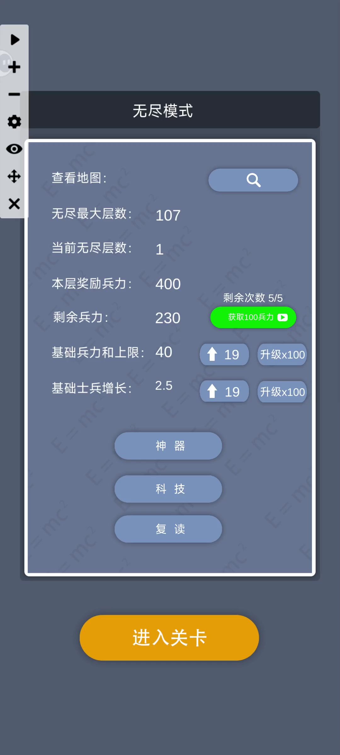 每局打完加点 加兵力或者恢复速度 打不过获得一件神器 (可以卡bug无限卖神器刷积分)(1级的神器10积分……20级的200积分)积分升级科技 升的差不多了就可以退游了
