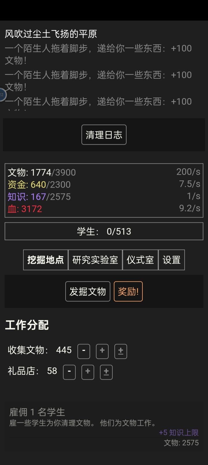 1个学生~加1点文物 0.1点知识需要10点文物 也就是100个学生才能增加1个知识 要想有10点知识得1000个学生