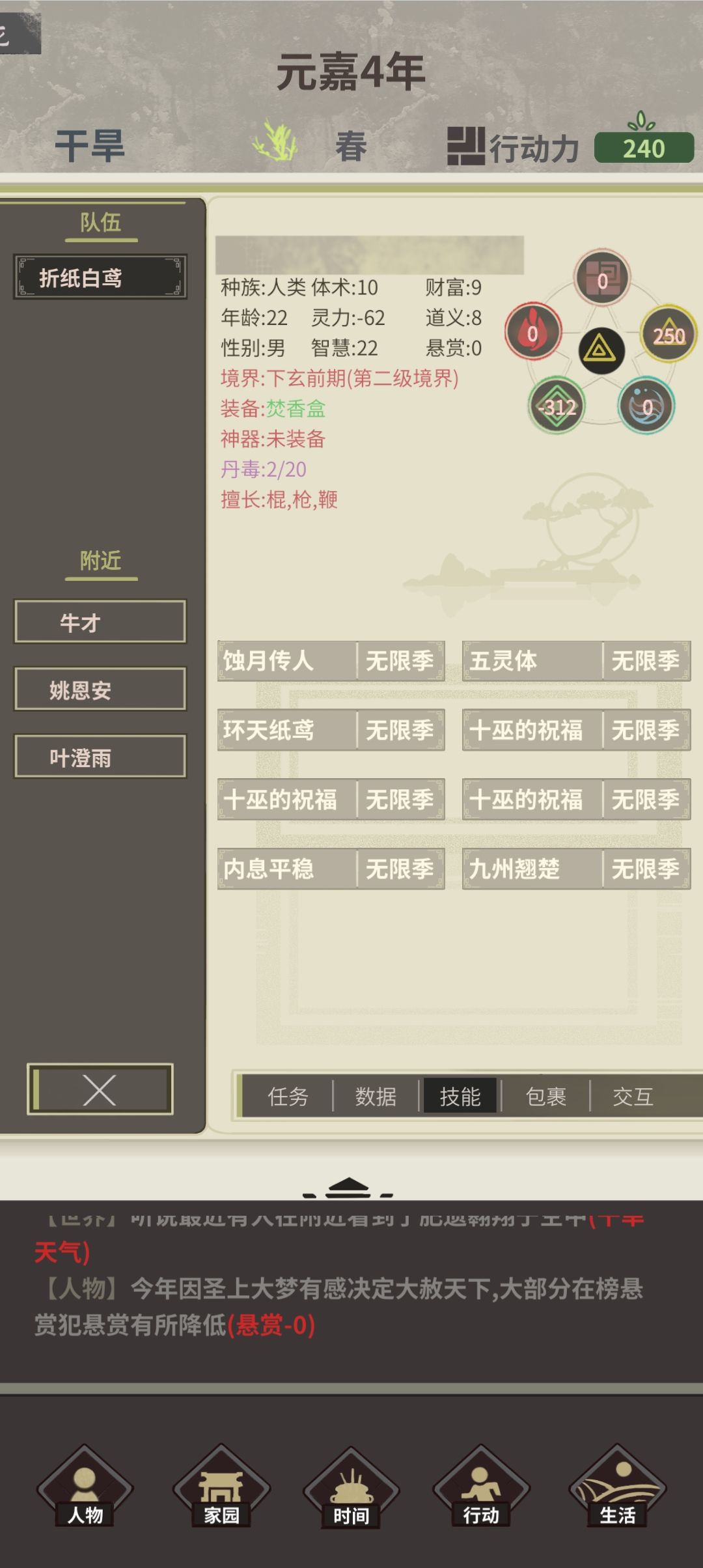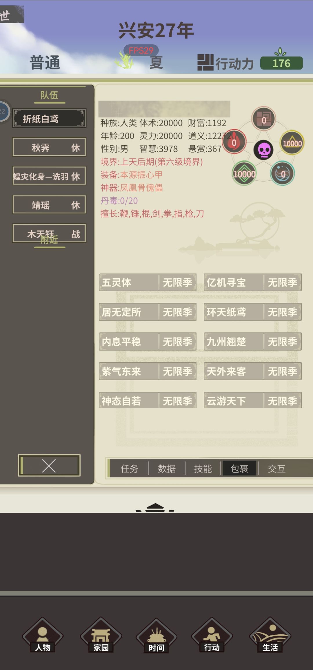 接(5)第九十五年,走靖瑶线,(大意了,叛宗前应该把心法熟练度拉满的,没想到叛宗后不加熟练度了),天青不染,琉璃黯桃丹,拉满,炼丹 第九十六年,(决策失误了,不应该叛宗的)练仙品丹元,易容,炼丹,丹元化毒, 第九十七年,刷丹魂(之后空闲时都炼丹) 第九十八年,加山海司,兰烟石赴约,悬赏犯刷贡献,走木天钰线(过到斗篷即可),刷贡献到220 第九十九年,继续刷 第一百年到一百零二年,继续刷,