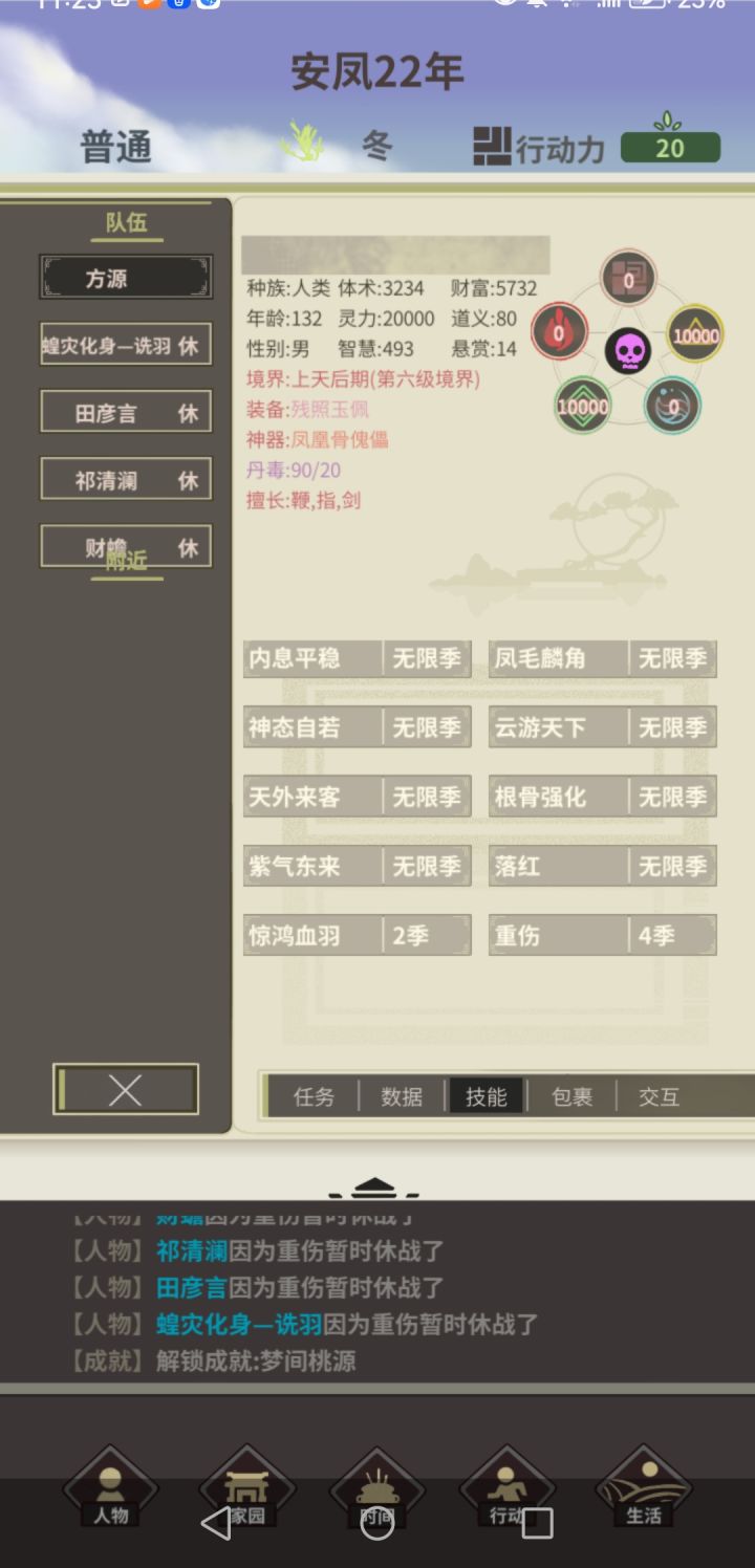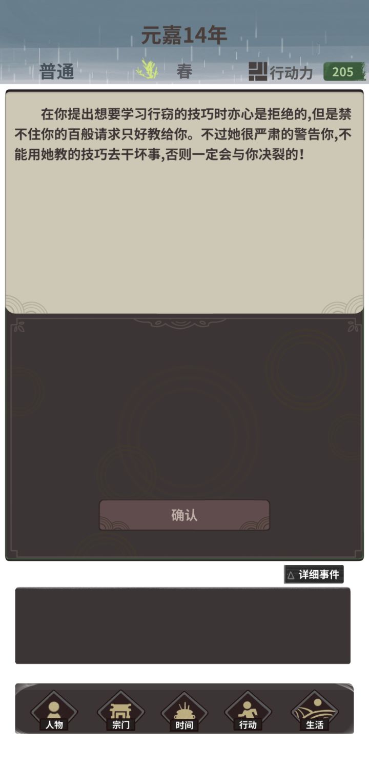 (数据源于往死里采集,所以有可能出现误差,但统计的够多理论上不会出错……吧?应该?)探索事件受福运影响,福运高触发几率越高,福运越高出现收益越好大致有客栈、灵石矿、游医、聚灵阵几项客栈普通客栈精力十足4季(精力十足:五点以上行动力消耗-5)人气旺盛的客栈精力十足6季冷清客栈会死(门派为焚谷教时不会死并每次获得九花沉眠散,门派为山海司且有医圣天赋时可以捣毁黑店)灵石矿:可以获得0~5
