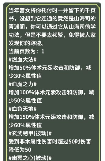 上线一周看到玩家如此积极我也有了动力起来,连夜爆肝了五个版本共计99条更新,更新详情见:现对1.1版本主要更新内容和以后更新方向【画饼(不是)】进行介绍:1.峨眉派新门派峨眉派只招收女性,也可以通过幼年被仙子看中或者天赋:峨眉子弟来加入峨眉派。峨眉派现在被称为第一福利大宗,只要躺平就可以获得修炼资源什么的。此外峨眉派还有一系列物品和功法可以增进修炼或者战斗回血【凡正阳克星+1】来让战斗变得轻