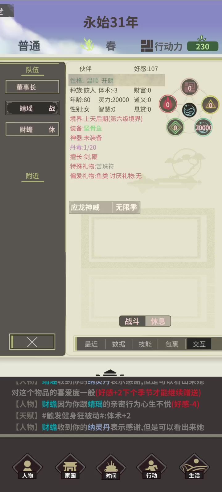 话说我和桃悠结婚,我给她送丹药结果祁清澜却减好感了,我想去哄祁清澜给他东西,结果桃悠减好感了 (祁清澜和桃悠好感均为一百以上) 但是给二十多的靖瑶送东西却没啥事#伏魔人偶