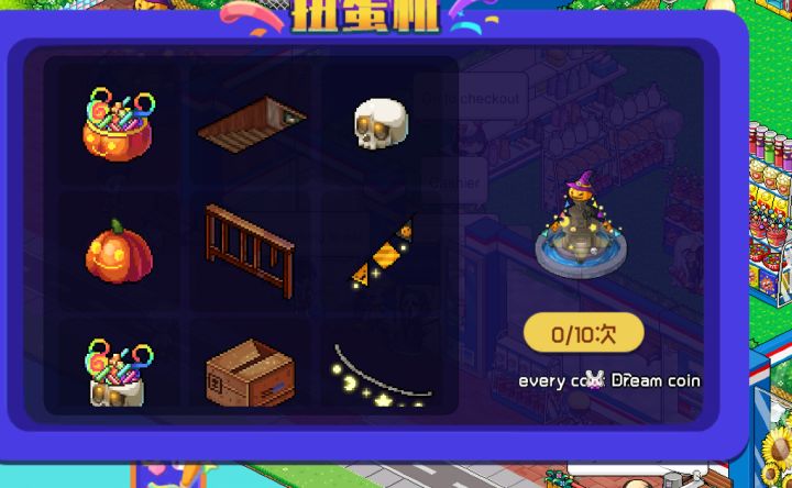 万圣节扭蛋机已经更新,各位市长可以进入便利店商店 装饰品 购买!!!!