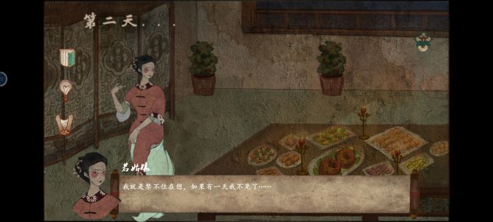 很简短的游戏,达成了【结局一】和【结局三】。至于别的结局,按网上的攻略试了,还是这两个结局;又想到会不会是这个版本的问题,只呈现了部分内容,又从百度上下载了游戏APP,但是内容一模一样,还是这样的结果。这个游戏的画面很有特色,是这种立绘风格的,看到的第一眼立马想到了《天书奇谭》里狐狸的扮相,很不错。游戏的故事情节和人物角色设定也是不错的,归国青年何斯嘉的身世之谜、莳花楼银朱之死、面具店老板和若姑
