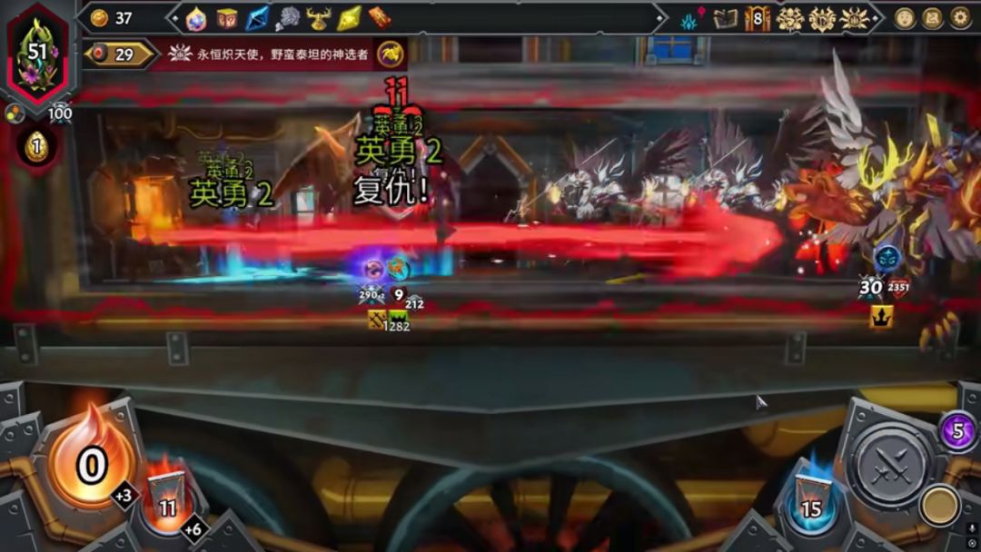 玩的觉者迅捷+狂怒,勇者后期进化挺自由,手里有多重(觉者有多重2的,狱魔也有多重的恶魔)就可以选横扫,手里有横扫(杀戮+4攻那个挺不错,就是血薄了点,得打强化)就可以选多重……但是就怕都是横扫或者多重……勤勉者撕法术不敢打,耐心者每回合攻击,要准备打了重生的小鬼,或者眩晕卡……初始卡战斗仪式必有,最好另一个双卡是微光,前期aoe+奶,是真香……后期打boss阵容基本就是勇者+横扫/多重,这俩单位负