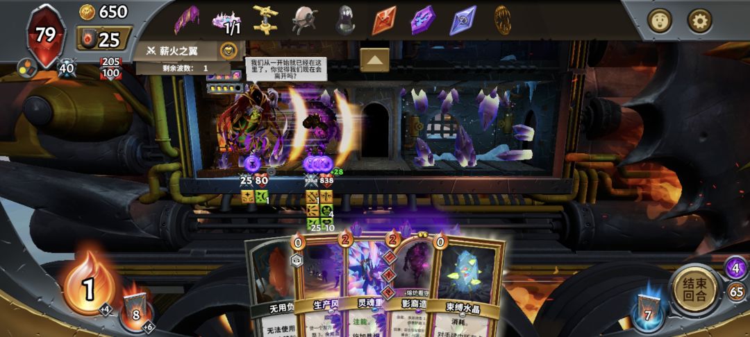 #怪物火车 这把影主也很强啊,副族完全不用管,雾影道钉打上删除消耗的石头,然后复制卡牌,靠着一个雾影道钉配合影裔清道夫刷余烬,另一个道钉刷属性,强的不像话,比BOSS强百倍 其实第一个道钉可以换成火焰激发的,但是我没抽到!