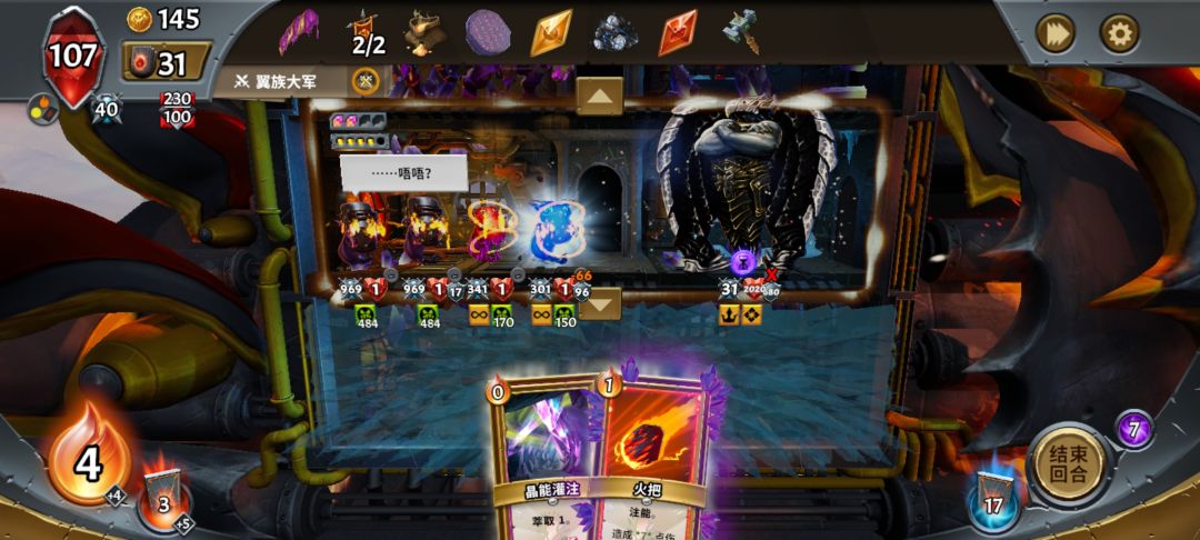 和传统的回合制对决不一样,怪物火车不是怪物守塔英雄爬塔,而是怪物爬塔英雄塔防,过了这村就没这店。光防御高是没用的,打不死就上去嚯嚯你的薪火去了。所以盾反除了为了生存外,还得打出伤害。 起手初始牌必须要有两张焊工助手,其他的叠盾都慢,前期盾反是没有伤害的,需要依靠英雄和其他伤害牌过度。 核心神器:死者骨灰(召唤效果+1)铁道锻锤(获得护甲值+4) 主C分为三类: 首推的当然是以护盾为伤害的巅峰小鬼