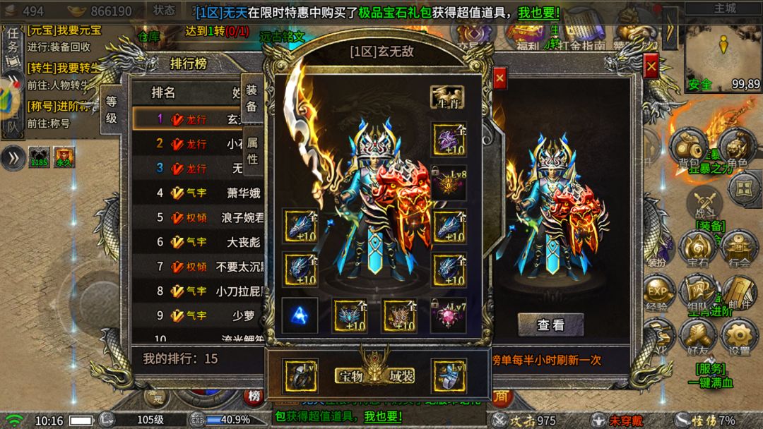 今天给大家讲解的是龙城天下的转生玩法和龙魂宝石。 每一次转生可以解锁更为强大的高级装备可以提高各种属性,让我们有一个好的游戏体验。每一个地图都有转生限制,游戏秘境可以爆出转生之书可以让你快速提高战力。 转生之书在你达到一定的值度也可以交易获得其他的防具和饰品,让你更快的提高战力,解锁更高级的装备。 龙魂玩法可以提高你的各种属性,宝石在一般的秘境都能爆出。宝石分为:攻击宝石 防御宝石 爆率宝石