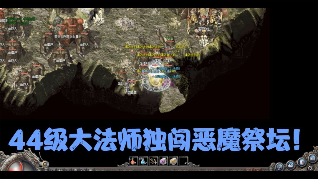 热血传奇:176极品服防御42魔防30的44级大法师单挑恶魔祭坛,爽