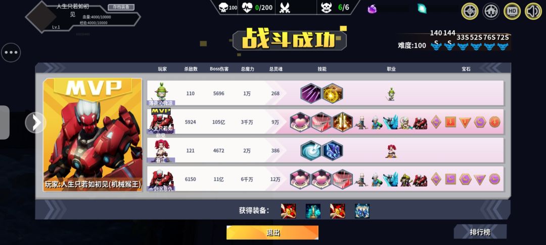 话说,从第一天打了一下午还是没有过难度一,我的心情是崩溃的,后面翻攻略,看帖子,再到资讯客服,没想到找的那个客服竟然能被策划嘲讽不配玩这个游戏使我没想到的。 这还真是萌新碰到菜狗——又萌又菜又狗。 但是从过了难度一开始,那种愉悦感是没有什么能取代的,就像初尝禁果的...🤫🤫 然后晚上组队跟别人打难度20 第二天跟人组队打30 第三天跟人组队打40 第四天跟人组队打100 第五天直接稳定100难度一