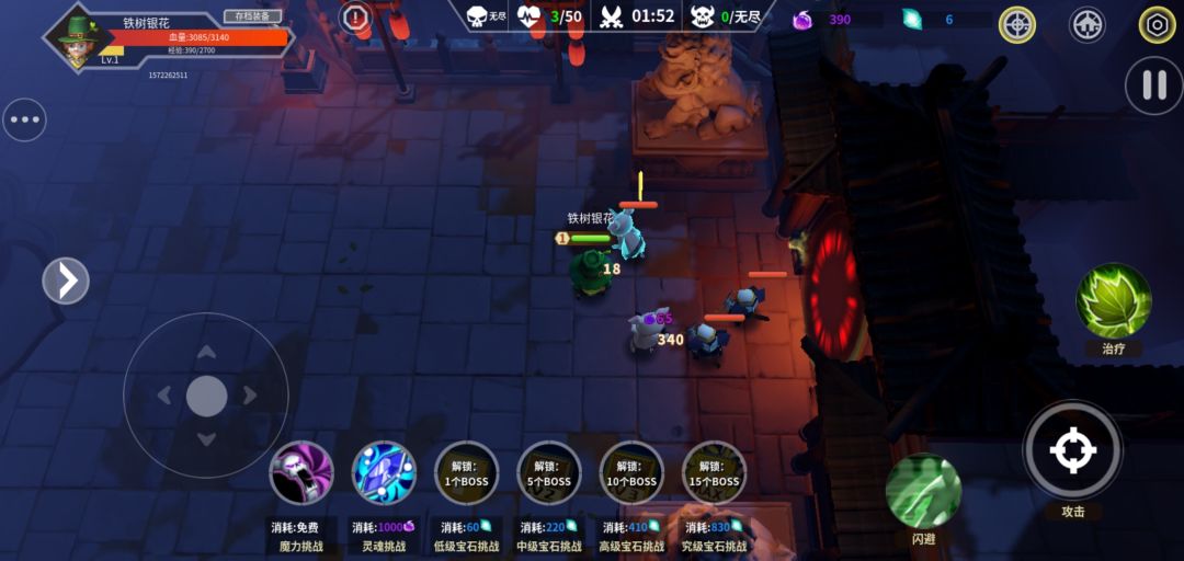谈谈我的单人无尽之路心得,希望对大家有帮助,我玩是大树召唤流,既然是玩召唤,塔必须是气血塔了,1-15关以刷主动技能初级大树,被动初级死亡召唤,法宝九曲芷为主!1-5关有大树必通过,6-14关有了九曲芷和死亡召唤也是必过的,15关就要一个磨火石才能过了,打法是1-15关只用随意一个D级英雄,因为磨火石只有一个D级英雄伤害翻三倍,等BOSS到了出怪门口,变大树用治疗,接着把魔石怪,灵魂怪,宝石箱全召唤出来让就会有一堆的亡灵,一般每只亡灵能A10_20万血左右。 15关以后换双主动英雄,技能改成大树加野兽,被动用生命成长,D级换成小鹿减CD,C还是女妖,B换减CD的圣诞老人,宝石全紫宝石,大树技能一冷却就用掉,能刷新治疗技能,血量是没变大树之前的十几倍,!S英雄出了就把D换成女巫就行了,冷却最高80,能全程九曲芷被动!