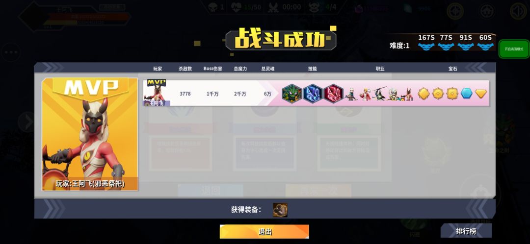 附上一张比较好的打BOSS时间图。 核心是平a流。稍微变动下,又帅又安逸。先上视频看效果,移动炮台,屏幕里都不能出现小怪。 这个游戏目前版本,只要自己会玩,队友挂机不挂机无所谓的。没有需要太多的队友配合地方。我们群里高层玩家,往往都是一拖三轮着c。 但匹配的时候,不建议去别人路堵着吃线,这样其他玩家游戏体验不好。吃自己一路的线也是能够c的。 游戏小知识与小技巧: *31层开始5个BOSS,61层开