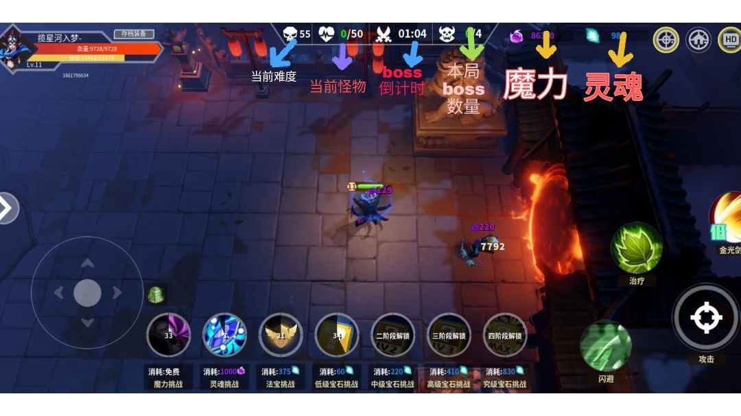 明确游戏目标:击败四个boss 需要知道的是,板块分为:英雄,宝石,法宝,属性塔,装备,技能 在这里给出大家一个前五十难度秒天秒地秒空气的搭配 以下纯干货,请细嚼慢咽 首先讲思路,每个boss之间有七分钟的发育时间,要抓紧前三个boss的21分钟发育成型,否则只能给第四个boss刮痧 开局选职业,有建造师选建造师,没有的话就随意选,个人建议森林之女,加技能伤害减cd那个 建造师可以大幅度减少属性塔