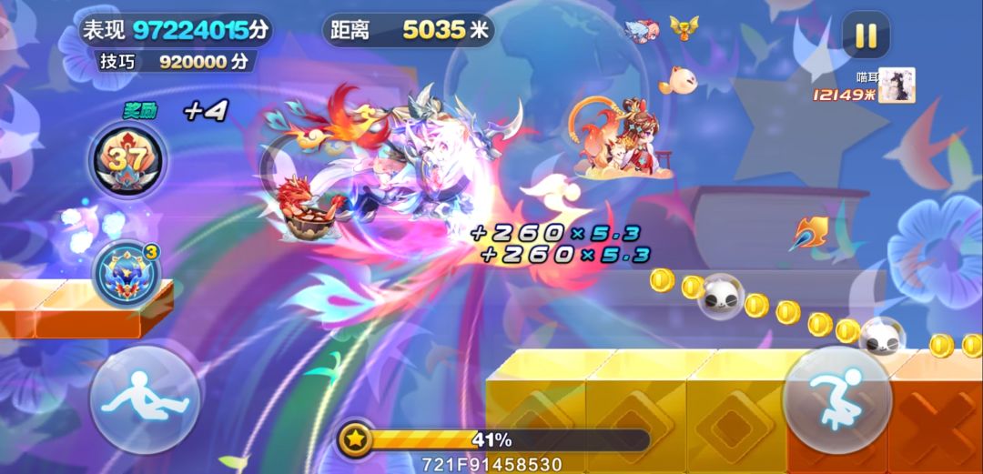 老规矩,先上图 先说明一下,这把是因为买了开局3000,按正常买表现30跑的话8500米就已经2亿3可以爆分了 然后说明一下狻猊的坐骑技能 出现变金币,表现分加100%,适合冲锋,穿越得分开技能 不变金币,坐骑加分60%,适合冲刺开技能。这个期间不管你是开技能冲刺还是吃冲刺道具都会触发喷射高分飞星,得分有保障,ps:直接超奖开技能吃飞星也有近1千万得分。 开局进场是固定变金币,然后每隔30~40秒