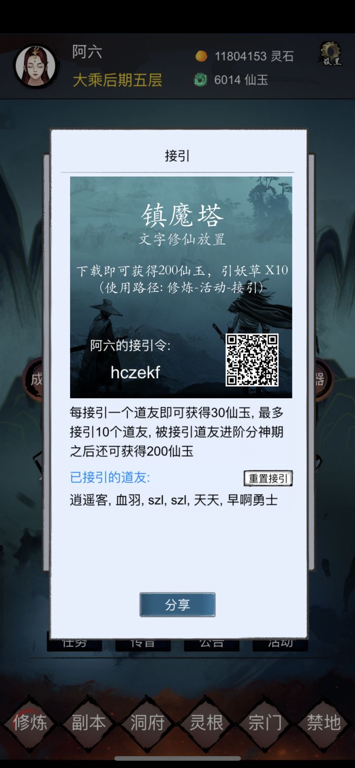 求个还能用大佬的接引码,已分神一