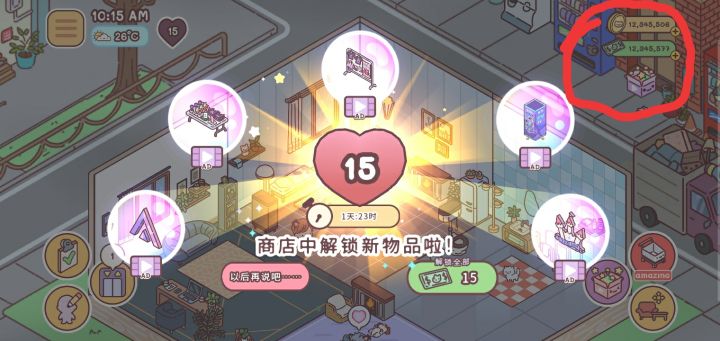我下载的是最新版的。无论是家具还是人物装饰都有更新。我一共可以解锁八层房子。也就是32个小房间。 钞票金币我有很多。想知道的可以询问。
