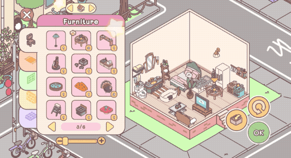 本作是2022年2月发布,名字很多,有的叫作“口袋爱巢”,有的叫作“口袋里的爱”。画风很治愈,家具也很可爱,挺吸引人的,十分好玩。休闲小游戏,十分适合放松的时候玩一玩。=下载方法=IOS:国际服,可以转港区、台区等,搜“Pocket Love”安卓:找不到在哪下的话,。后续更新也一样=语言=本作是有简中的,入坑无语言障碍=登陆方式=进行帐号绑定,可以保存好游戏进度