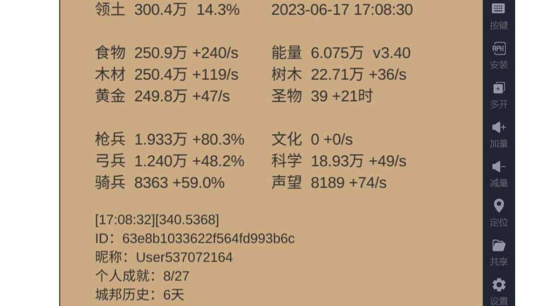 新玩坑都踩了,所以在不用的旧手机上二刷,如果将来超过了领先140天的一刷,就准备删一刷等存档覆盖之后放到在用的手机上。 这次准备走声望平衡了,我会计算每种一阶兵的单位战力,然后根据基本不等式最大值调节比例,尽量使每单位声望发挥战力最高,除非后期前两境需要增强,才会稍微多给一点,到时候根据情况看吧。 庆典不急着用完,差不多奇观五级开始就要适当压指数搞博物馆了,后面看看每一阶压几级毕竟划算,毕竟文化上