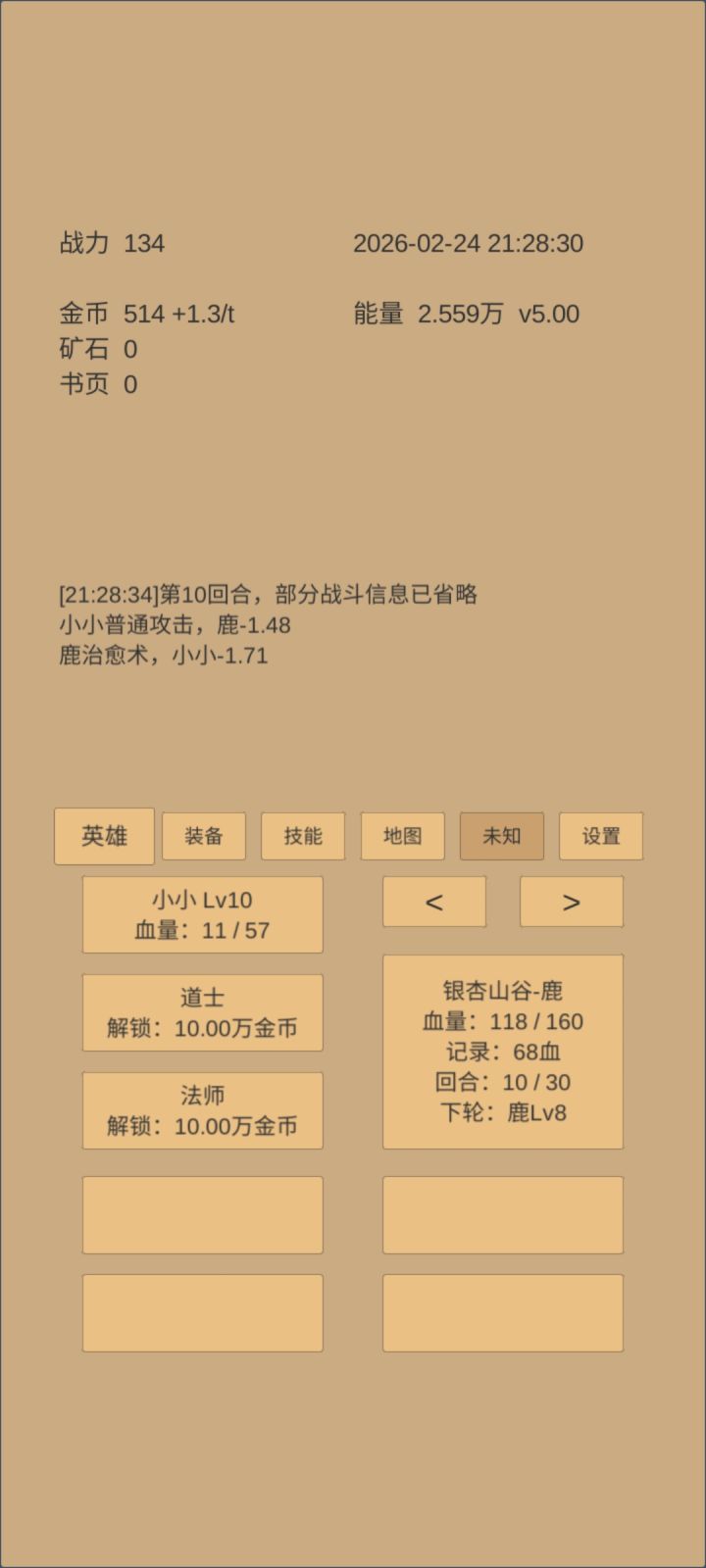 鹿用治愈术,小小还伤血,1点还算少的,甚至还有10几点的,这个设定有点怪。小小升级又不加防,除非血量大大超过鹿,否则别想打过鹿。