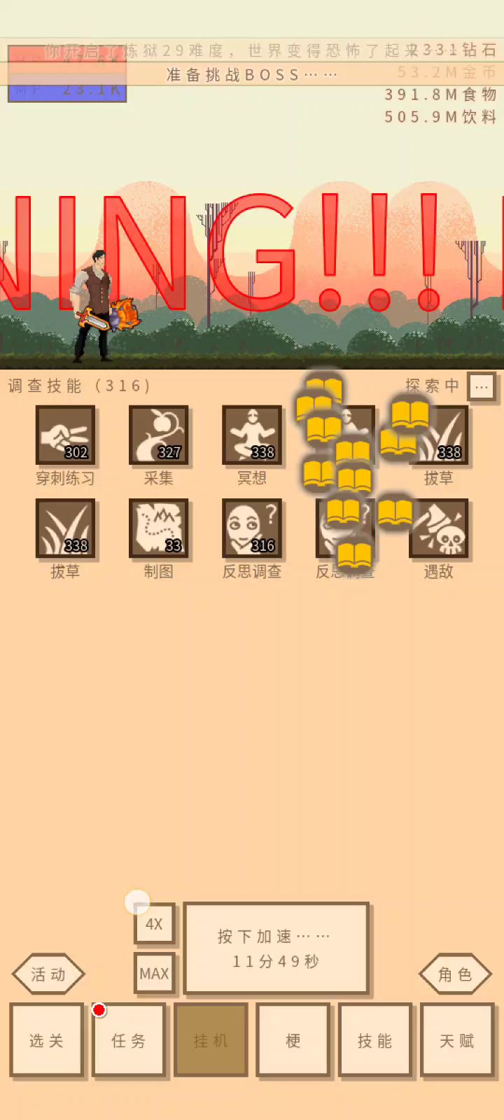 新版本炼狱29也不是太难,天赋蚌埠住了,他急了,暴走和雪月花。转生转个30转,秋裤健康练个1000级,再随便强化下生命值抗性,还是很好过的。