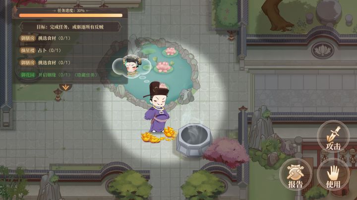 游戏玩累了 就去御膳房整点美食吃吃吧;按照菜谱挑选对应的食材进行烹饪,今晚必须要饱餐一顿;