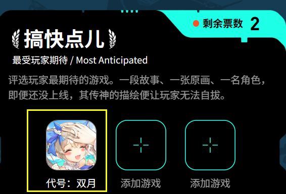 TapTap年度游戏大赏开始啦!好激动好激动!咔咔拉疯狂围观!这么有氛围的活动,必须参加!首要目的,送京东卡和抱枕!次要目的,看投票情况吧!重在参与!助力双月搞快点儿,抓紧上线!点击链接投票👉投票时间:2023/12/28-2023/01/06参与奖励:本帖下分享投票成功截图即可参与系统自动抽奖!如评论格式不正确将会被咔咔拉手动顺延至下一层哦!注意事项:选择搞快点儿选项一人一票,