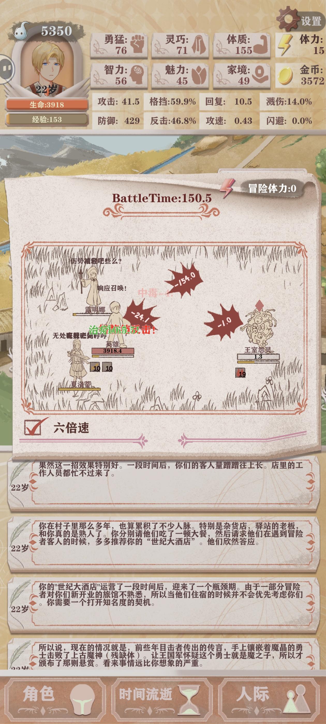 本次轮回是我通关的第四次(之前还有很多次贪死的时候,之前也是没看什么攻略自己摸索😭),起始90体,自己玩的感觉想要舒服的话最好能有一个加钱的天赋,比如打工战士或者钓鱼达人,前期最重要的是买出睡袋(个人感觉),怀表鞋子可以看着钱来,魅力(和孩子玩)还有读书都是必要的,前期尽可能先把异世界故事读完(加10智力),10岁11岁开始读书就只要10体力,贪的或者体力不够可以考虑晚点读满。老爹给了钥匙记得把花15体力把三个起始白装拿全了,前面如果体力不够可以先不考虑刷好感度,一切以刷钱为主,最大化冒险的收益(这次我10和11岁好像都没去找露明娜˃ ˄ ˂̥̥ ),后期永久加攻击力属性的其实可能没那么重要,重点还是要保证有钱找功夫婆婆还有健身,如果是格挡防御流的话功夫婆婆最好都把属性吃到,感觉难度高了防御流非常不容易翻车😇,最后切记不要贪,残血回家,当然有体力没好装的时候以经验为主刷比较好,0体继续探个人觉得也是没什么问题的(有篝火就是加体力莽😋)不死就行。