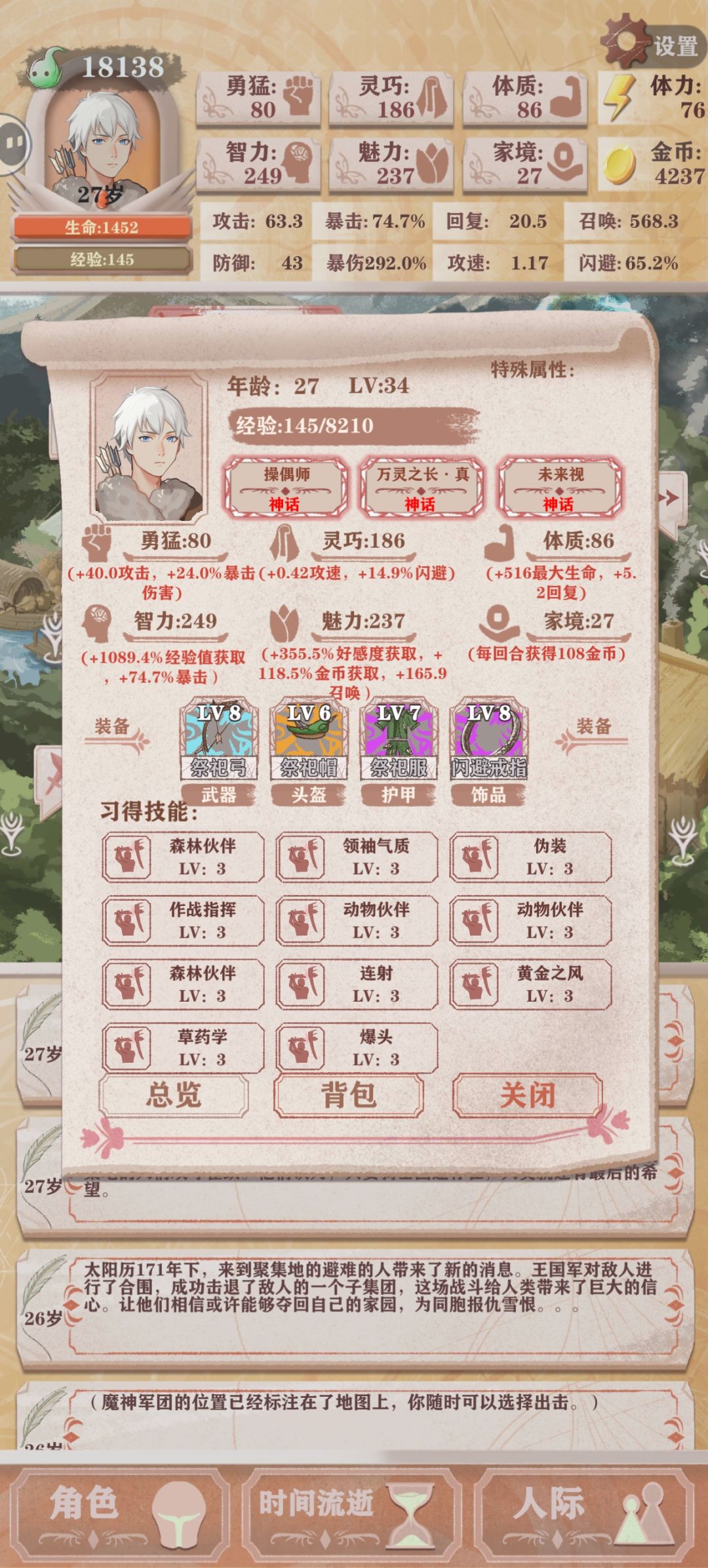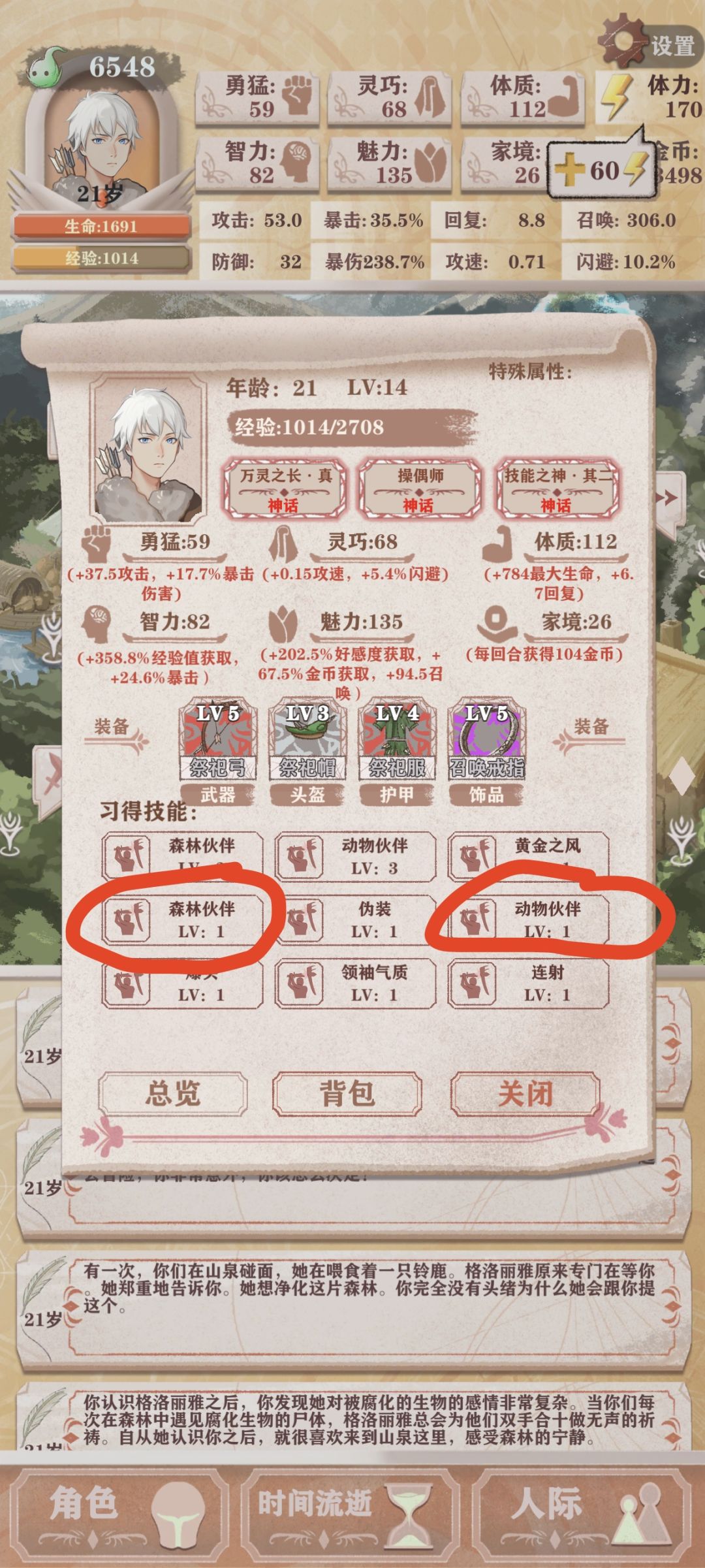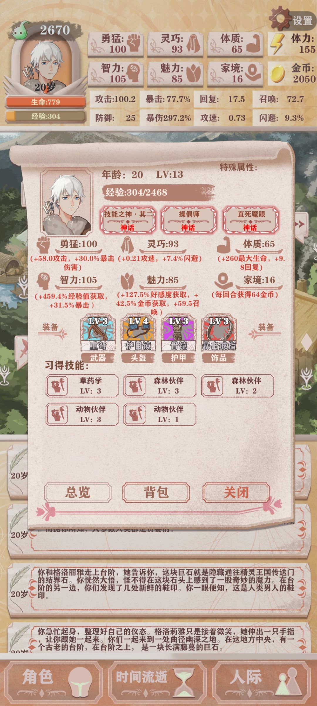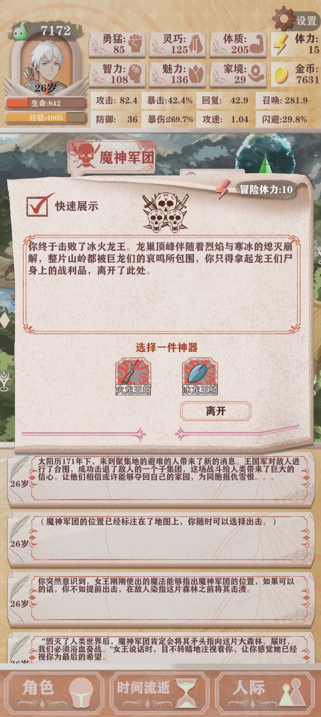 10岁后面每回合两次攀岩、酒馆喝酒吃饭、四次狩猎、老婆好感度,还有体力留20进图然后看分配大本营15体打工或者35体搬东西打工或者山泉40体换2魅力
