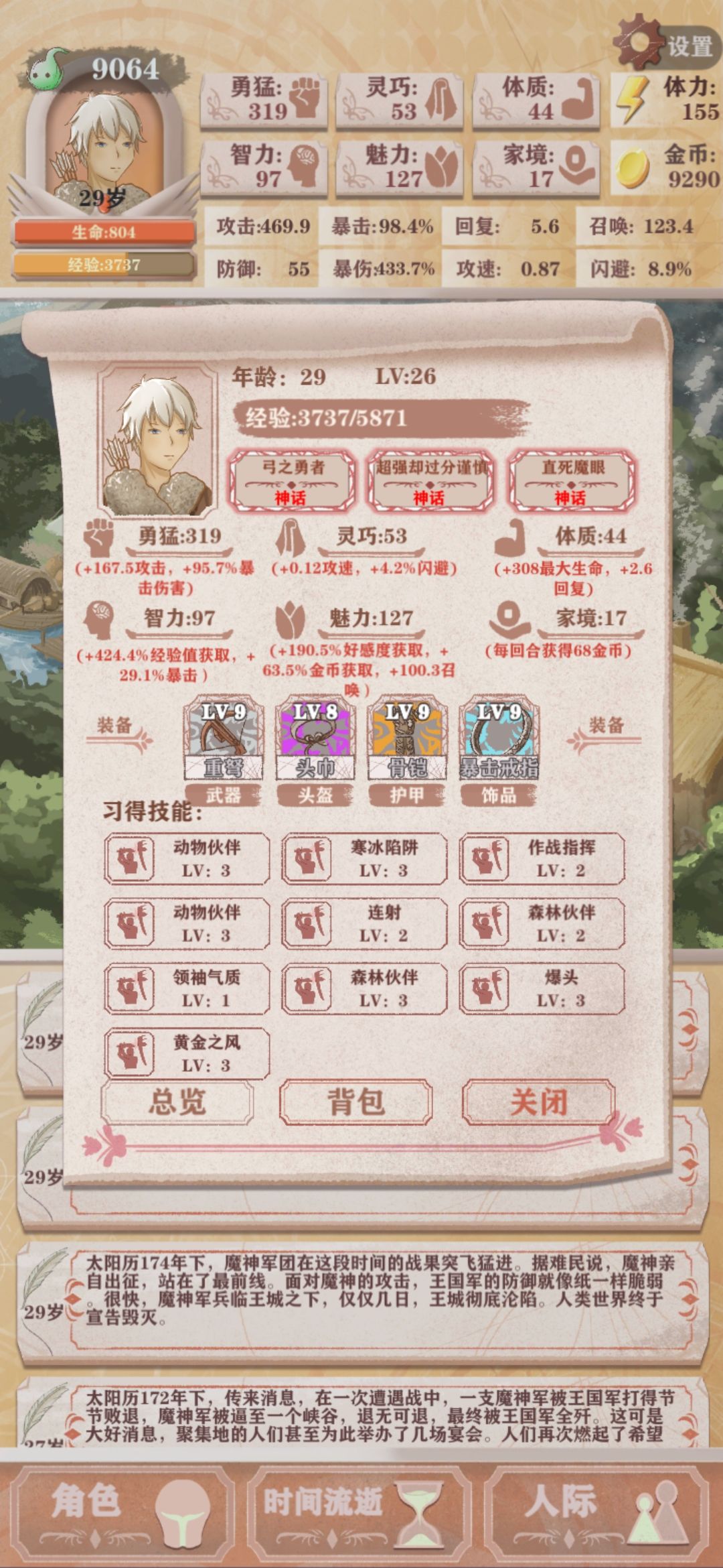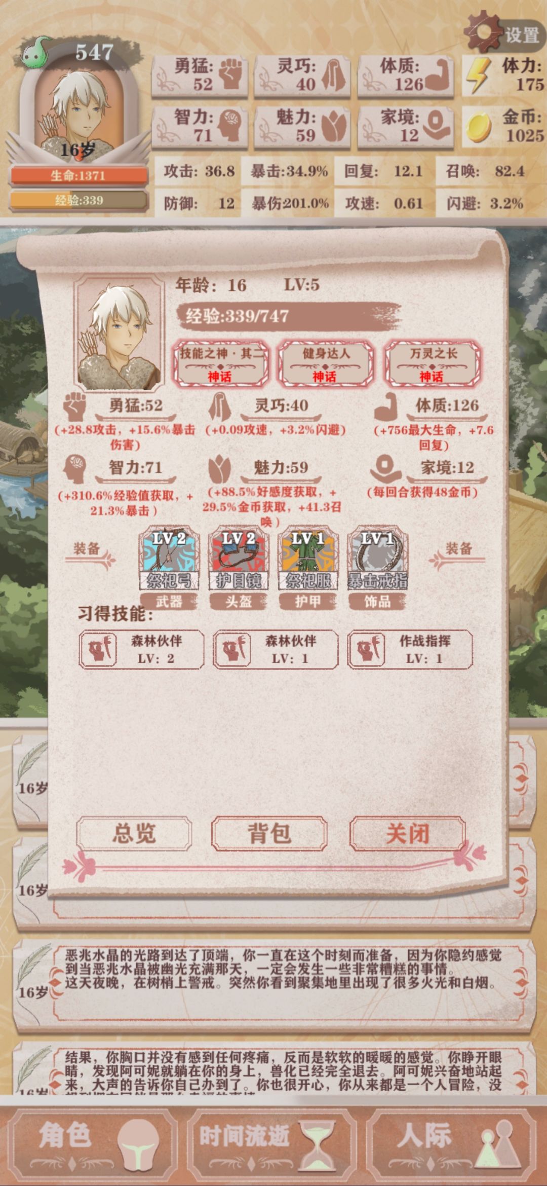 中期可以多花一点体力下本,召唤流吃技能和遗物,跟个人属性关系不大。有多的可以把自己的勇猛和体质点一下。有一个遗物和自己体质有关系。