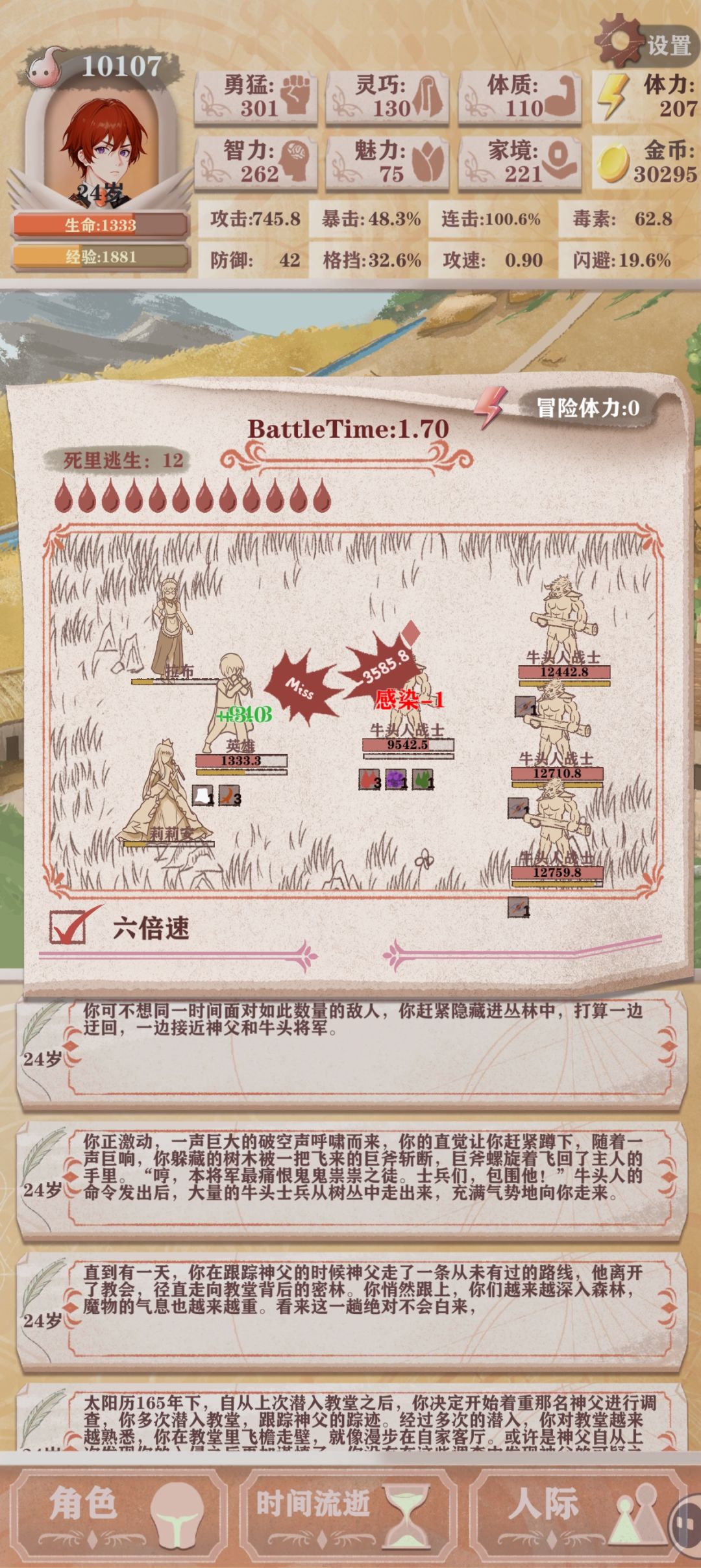 后期就买东西,把裁缝店的全买了,可以叠加。然后每回合750金币买药,勇猛和体质都行。