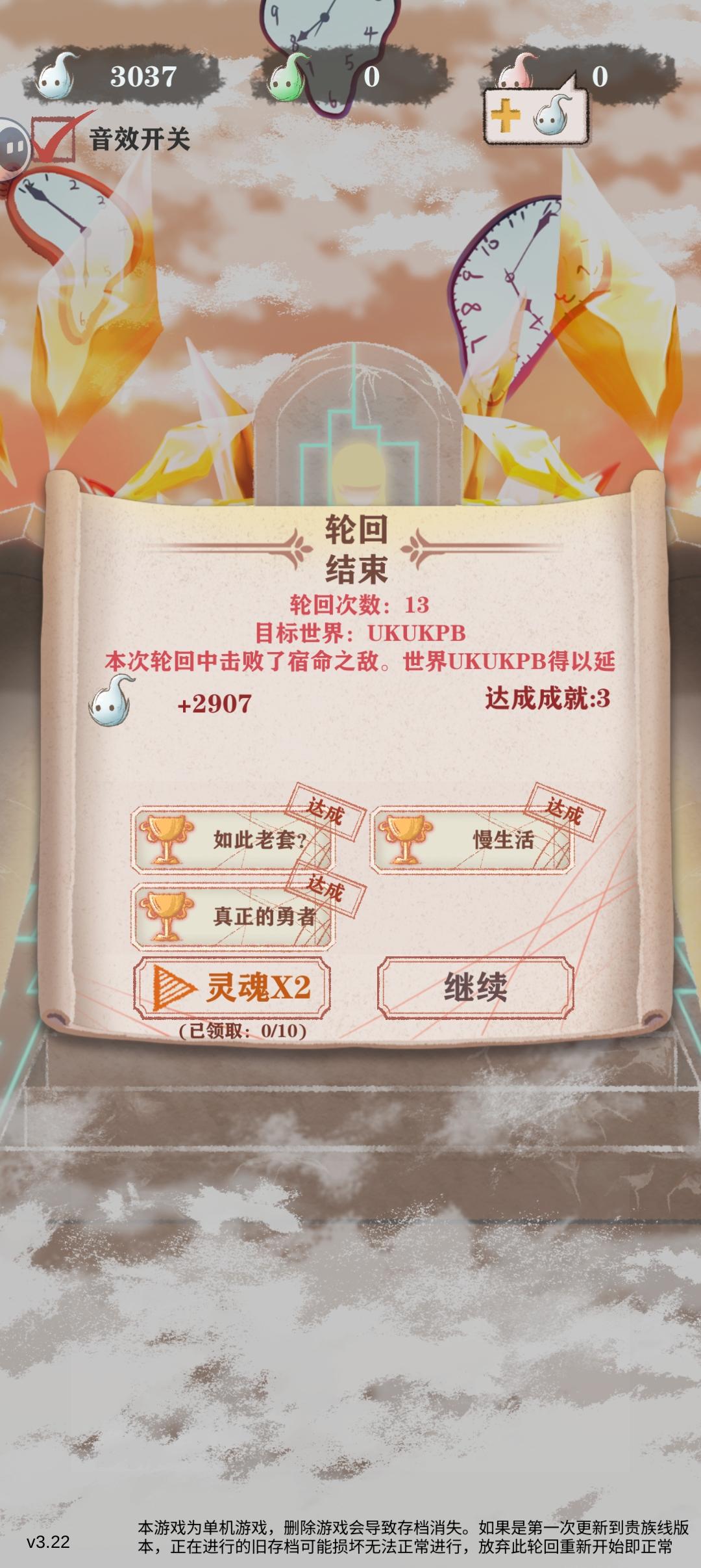 图1是第一次收集到四件全红的装备 图2是战胜魔王后的属性截图,第一次家境破100、灵巧破100、体质破200 图3是本局结束后的成就 图4是轮回的结局,然后发现真正的通关诀窍——一个字,稳![表情_酷] 真的不能太飘,好几次都是高战力觉得我又行了,然后上去就莽,结果GG,哈哈哈,真的连续好多次,就是主打一个自信[表情_捂脸哭] 想要打冒险boss,建议最少要能在下一级副本50体力的情况下几乎不怎么