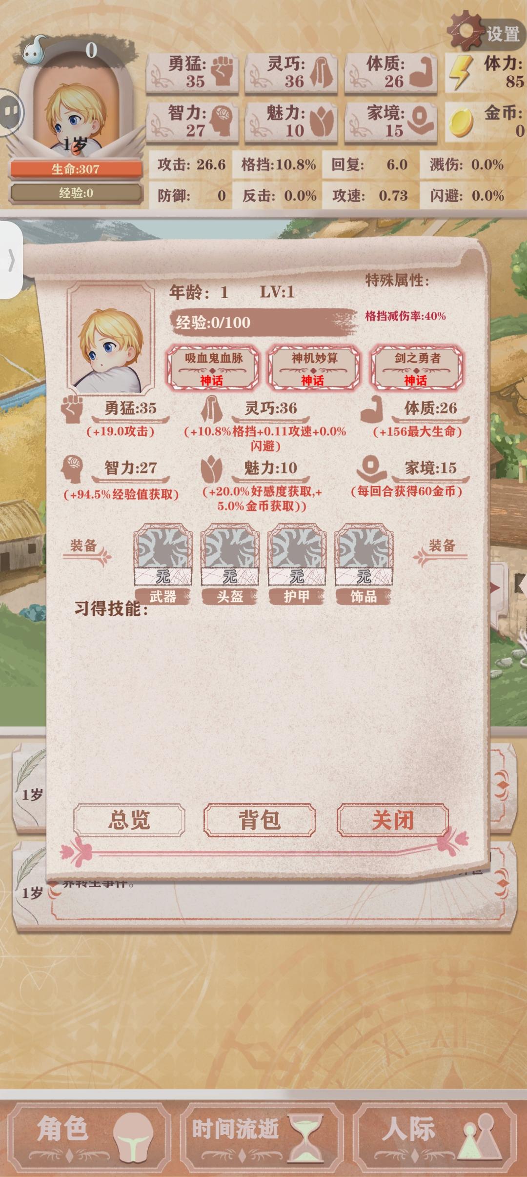 测试难度残酷五,之所以选择残酷5,是因为这个难度对于莽夫流是一个分水岭,更新前基本上速攻流派能走的路就到这里了,昨天开了一把剑勇测试新装备。 首先上结论:新装备,强无敌! 极大的提高了攻击流派的生存能力和数值上限,残酷五,剑勇,乱杀,更新前你敢想吗,现在也就这个数值一般般吧,我甚至这把没去钓鱼。 刚打完神父没多久,已经可以精灵王国横着走了。 打法思路就两个 1.20岁之前,能加魅力的事件绝不放过,
