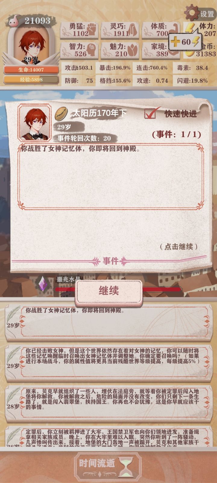 高残还是一击圣洁不牢,打了两把不过运营不起来,整的魔晶数量每次都能到100+(家境残4,71的时候后面变卖了)总感觉体力不够用,下本节奏是不是太快了,每次都留20下本。