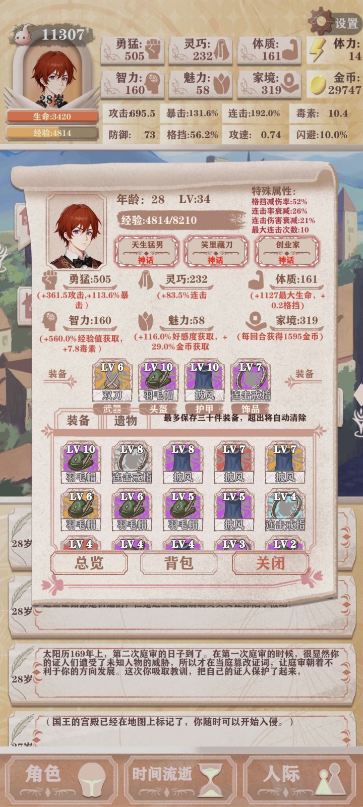 残六,基本没怎么sl,看了很多运营攻略,但是还是不太会,我承认开局有点贪战力拉了十几次勇猛(之前玩圣洁一击打地牢有点牢,没想到笑猛创圣洁前期打地牢没什么压力),但是感觉想拉200智力很难啊,这把没什么运气只盔甲暴涨了不打五次吧,前期投资了一把盔甲暴涨,20岁拉到150智力就只剩本金了,怎么才能那么快赚到200智力的钱啊