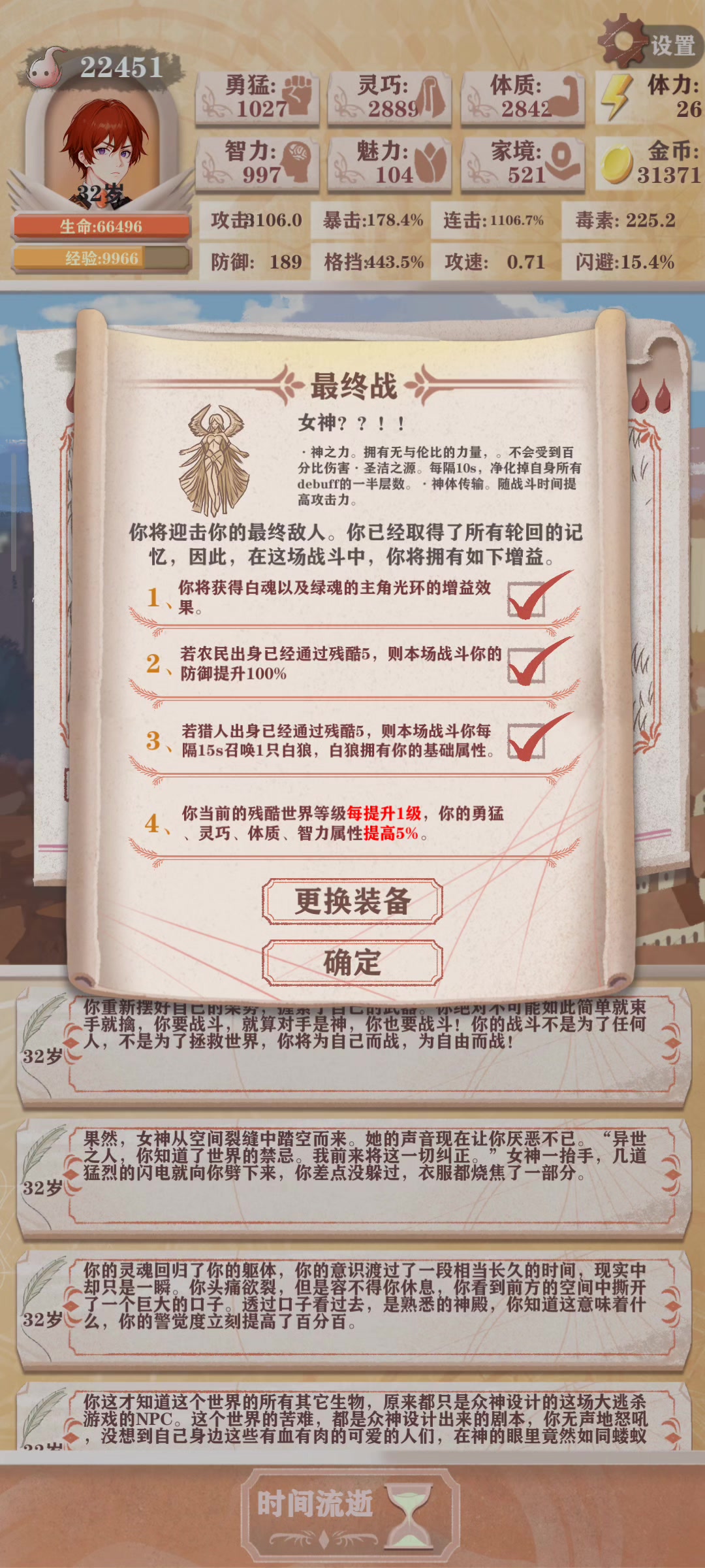 弃甲只能速杀剑圣,刚需神机和真剑 剩下的吸血鬼属于魂天帝可拿 孤勇和技神虽然能补防御端但运营压力太大 最后还是选择了打工,钱买属性也是比较重要的,也减少了凹委托的压力,3中2即可买满灵巧,智力,勇猛,体质(体质最后酌情拉)