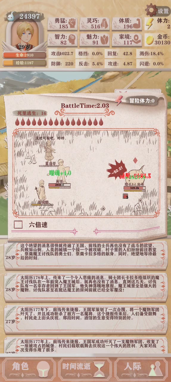 纪念一下,终于通关了贵族残15,用的圣洁流,天赋笑猛创,下本比较丝滑。3岁的时候sl一下找母亲,10岁前找两次爷爷到好感200,11岁前找母亲好感到250,15岁前父亲一直找加智力,读书每回合2次,7岁开了市场先买怀表加体力上限,可以sl一下逛街增加家境,魅力保证11岁有50就可以了,11岁开始野郊画画和营销小麦,如果有珍馐就sl一下3个,12岁开始王城打猎和银行存取家境,每回合开始先取家境营销