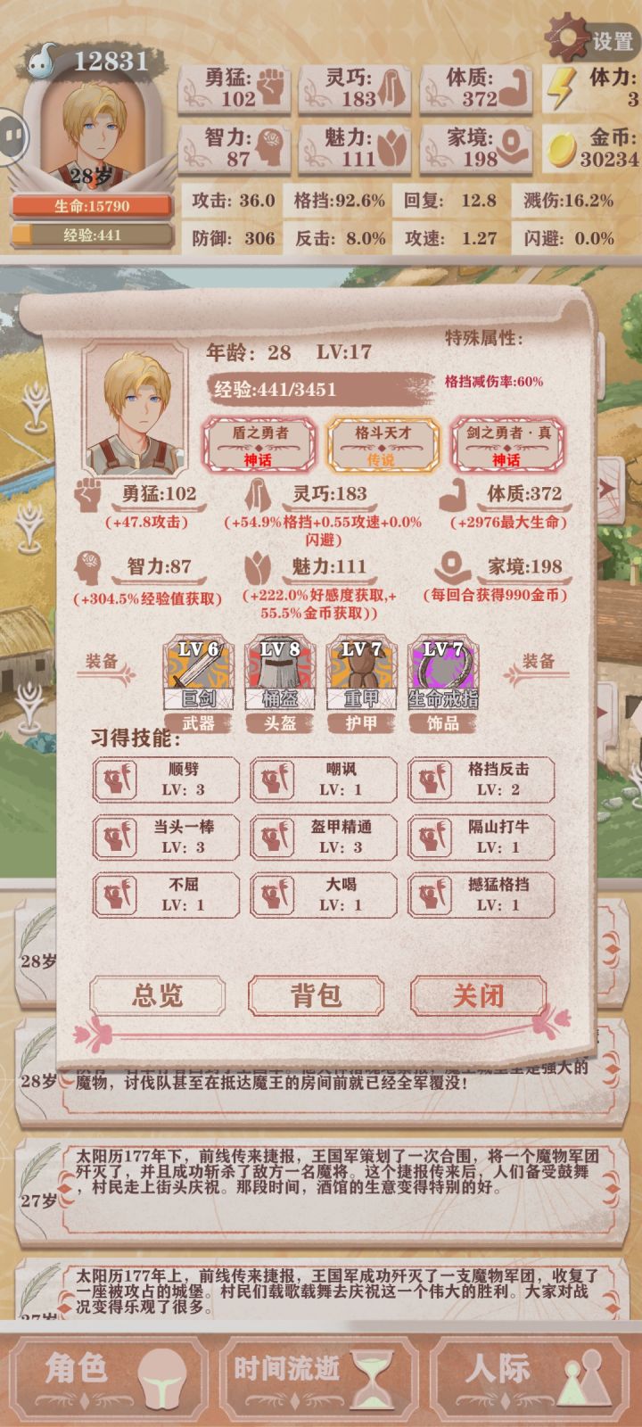 23年过完贵族十五不玩了之后想起农民残十五还没过,重新下载回来玩了一下我发现他们的那些攻略有很大的问题,导致前期特别弱势坐牢…导致装备也刷不了关卡也过不了…打到最后发现过不去魔王,我花了几天时间刷了下农民教你们怎么玩农民喜欢攻击流派的初始天赋:愈勇,格斗,吸血鬼(高残容易暴毙)喜欢防御流派的初始天赋:真剑,盾勇、(怕疼能抗、体力高格斗过高残兽人,魔王眷属基本1~3命杀)没过残十一的真剑换健身