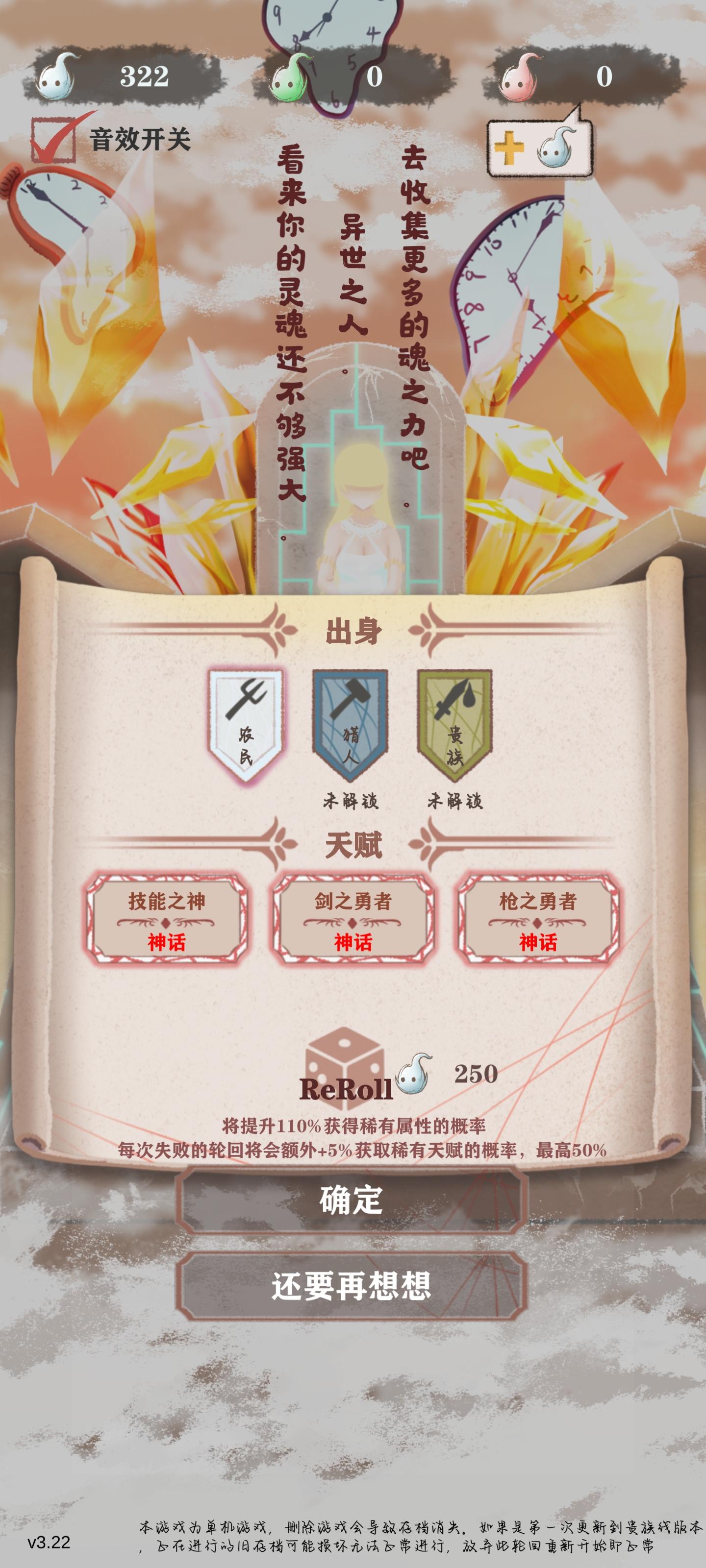 终于算是通关了,刚开始知道女神的时候还是残一,就直接打女神了,然后被打的道心崩溃,当时贵族还不太会运营,属性就没那么高,现在残四天赋就配了一个猛男,一个笑刀,还有一个橙色的凑数天赋玩圣洁流,通过投资魔晶盔甲总共赚了差不多50w金币,加上前两个光环堆了40次死逃,用了20多次死逃后打败了女神。在此纪念60多小时的游戏时长,兄弟们