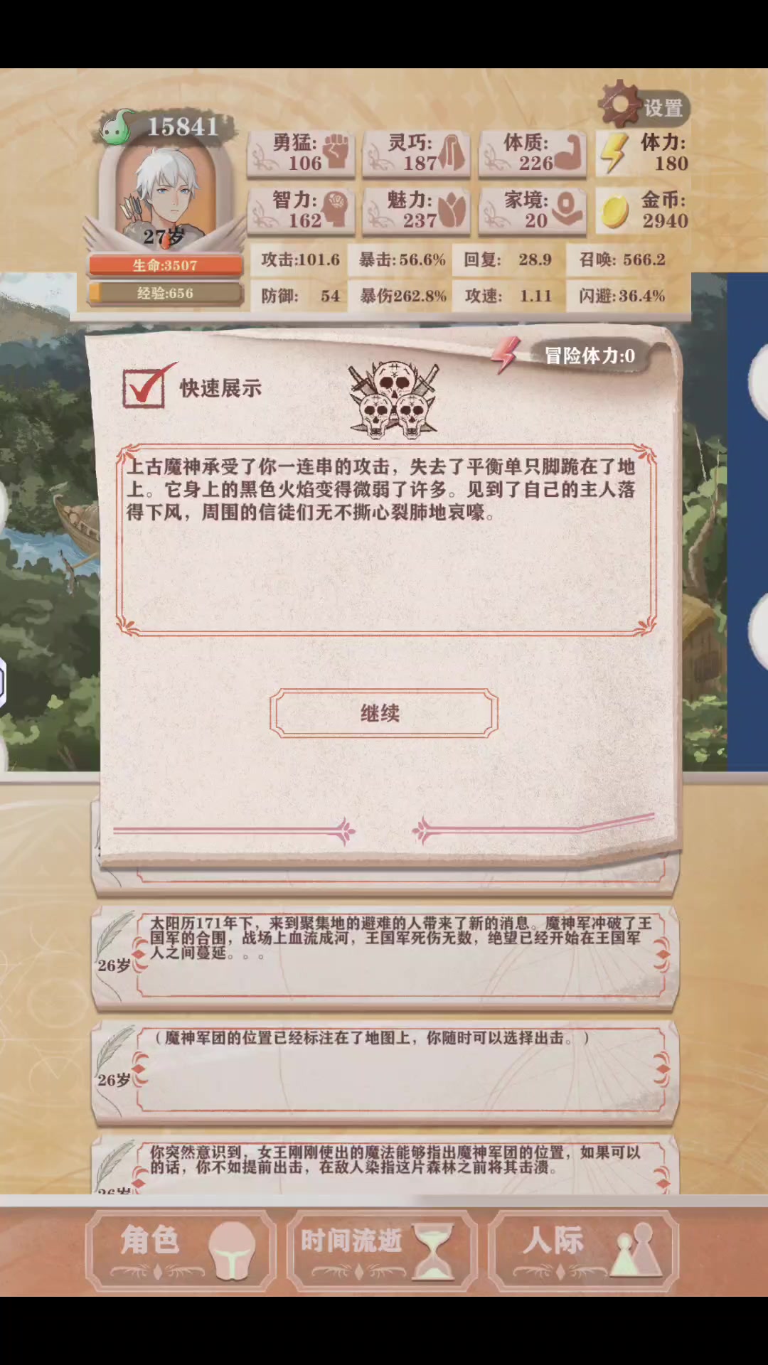 刷副本很舒服,唯一的问题是打不过魔王眷属,刷俩眷属能无伤,3眷属直接掉2-3次死逃,最后魔王一形态3次死逃,二形态4次。我梅普露也要刷高残!!