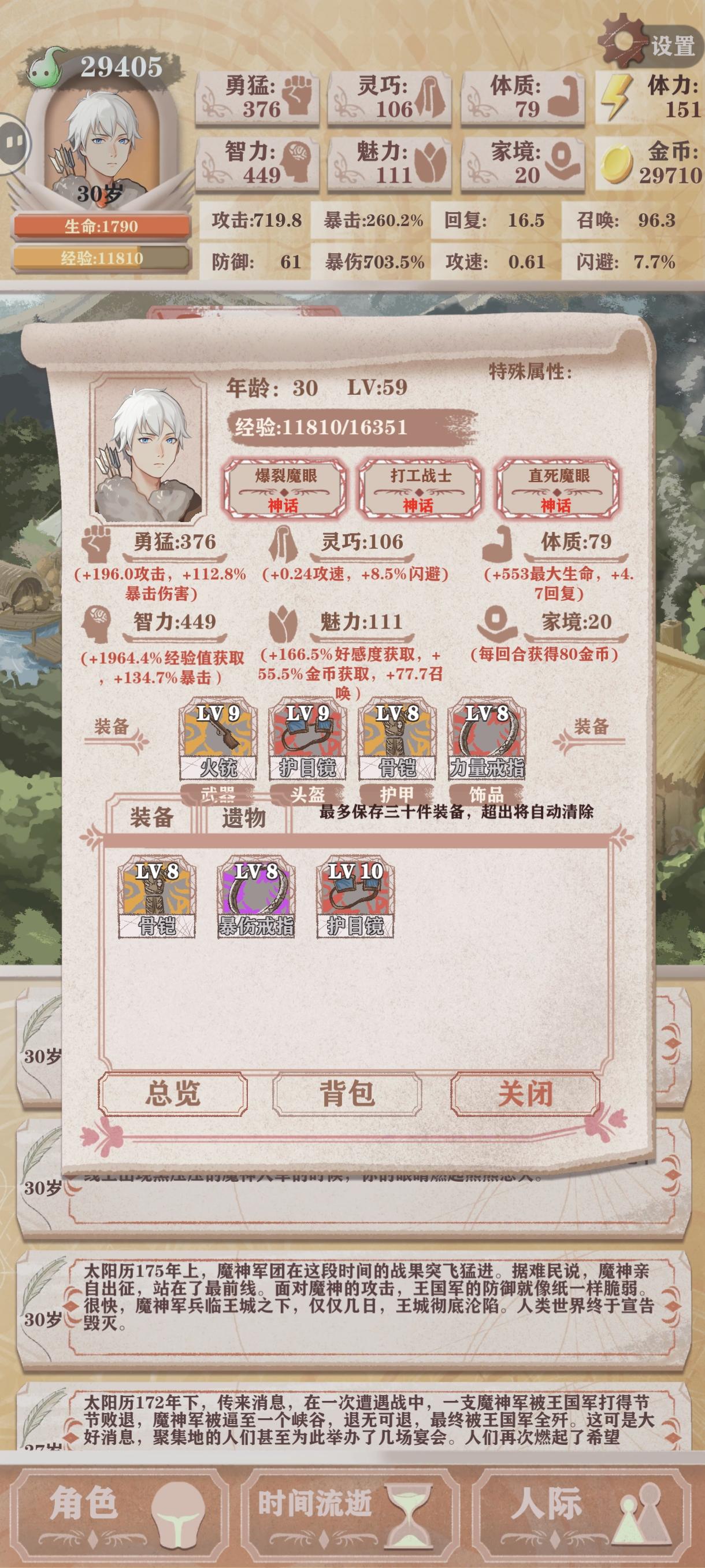 盾勇挺好玩的,无脑堆防御就行了,然后加体质!这是我最高的防御了500多,挺好的!伤害也不错,防御为伤害的遗物都拿了。质量也快7000了,所有有用的遗物都拿了!#游戏日常 血魔之盔是挺不错的,还有那个什么巨魔之所有秘境的boss全打了,反正农民真的比猎人好玩,因为经济稳定!我都没钓鱼,体质高了,打一次工钱也蛮高!不过上限是没猎人高的,那挺好的