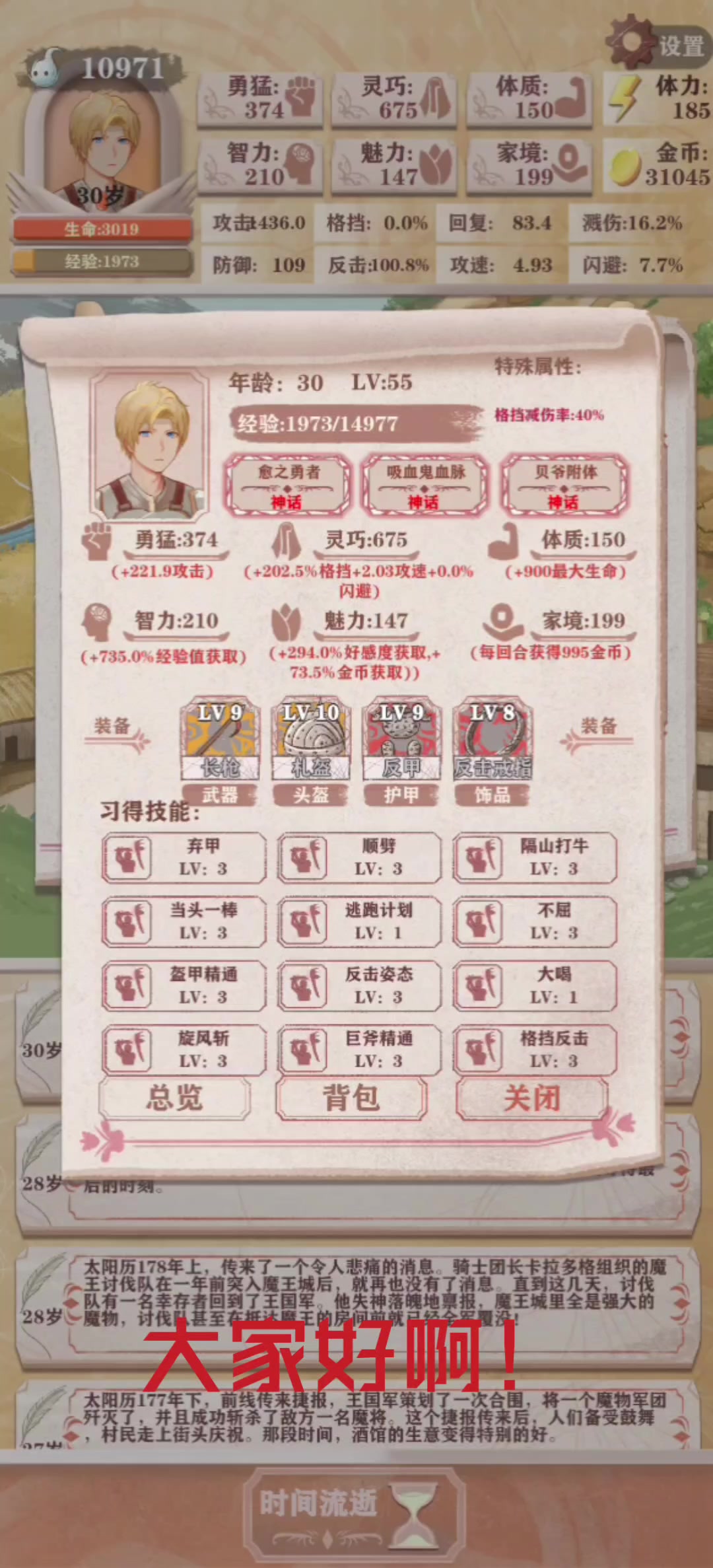 想着用弃甲农民过一下女神,但没有格挡女神输出真的吃不消[表情_捂脸哭],弃甲加的那点输出在女神五千万血面前根本不够看,所以得另辟蹊径,总结一下这把的经验吧。 1闪避得叠高。 打迷宫那个看广告全要的机会要留给剑圣,拿上他的嗜血和闪避斗篷,装备的副词条也尽可能多拿闪避。 2不要按压血流的思路打。 没有格挡没法像我上把残9压血流过女神那样控制血量,我的血条跳的贼拉快,根本止不住,所以弃甲需要一定血量来保