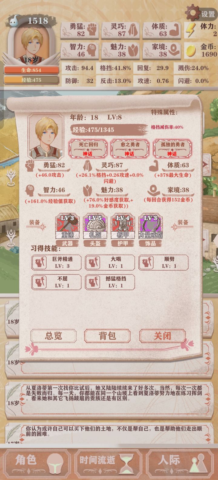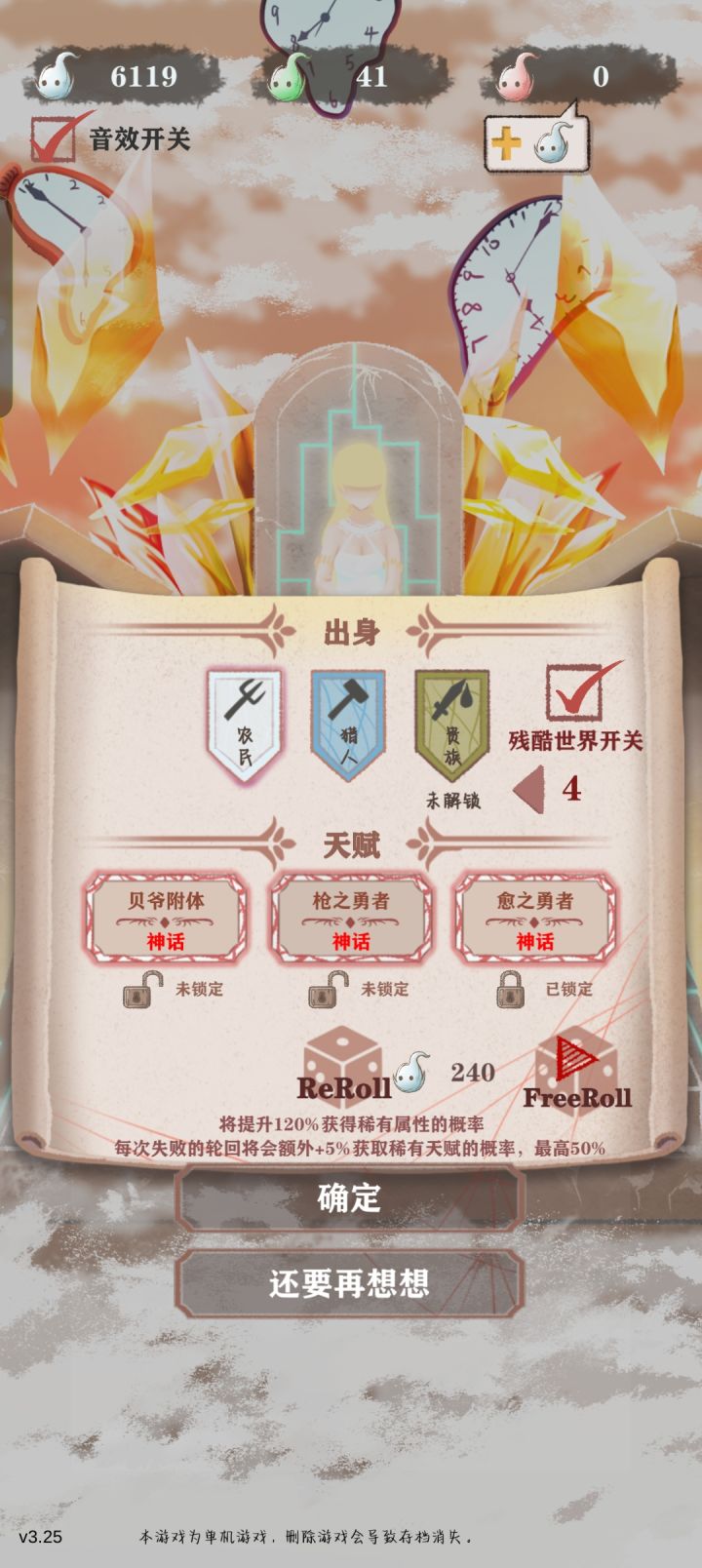 也是玩了几把就一个字,穷。还真荒野求生啊。农民至少可以当地主,这个猎人线就真纯穷逼。没有经济天赋,遗物都买不起。想打药还只能打三次。纯靠自己练,怪不得健身天赋这么重要。也就属性都变得有用了,不像农民智力魅力基本上就没啥存在感。总结来说,爱健身的穷逼。