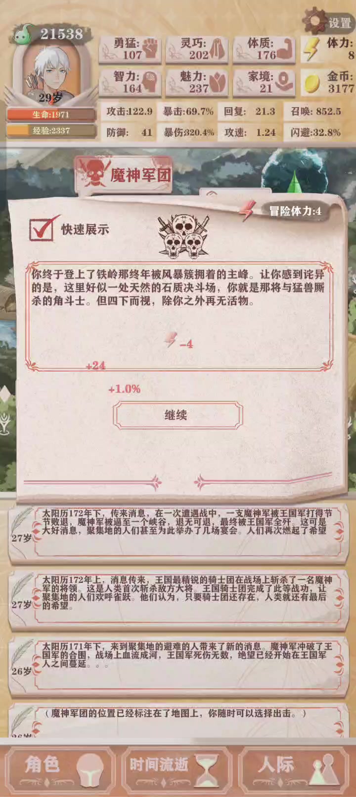 依旧三生活天赋,健身打工钓鱼,残10。 运气特别好,旅行商人动不动就来,正好都是赚钱的天赋,基本上有用的就能买下来,一个都没拉。最后打本打到遗迹的时候就只剩战鼓和兴奋剂了。 武器依旧一坨,兽人山谷动都没动