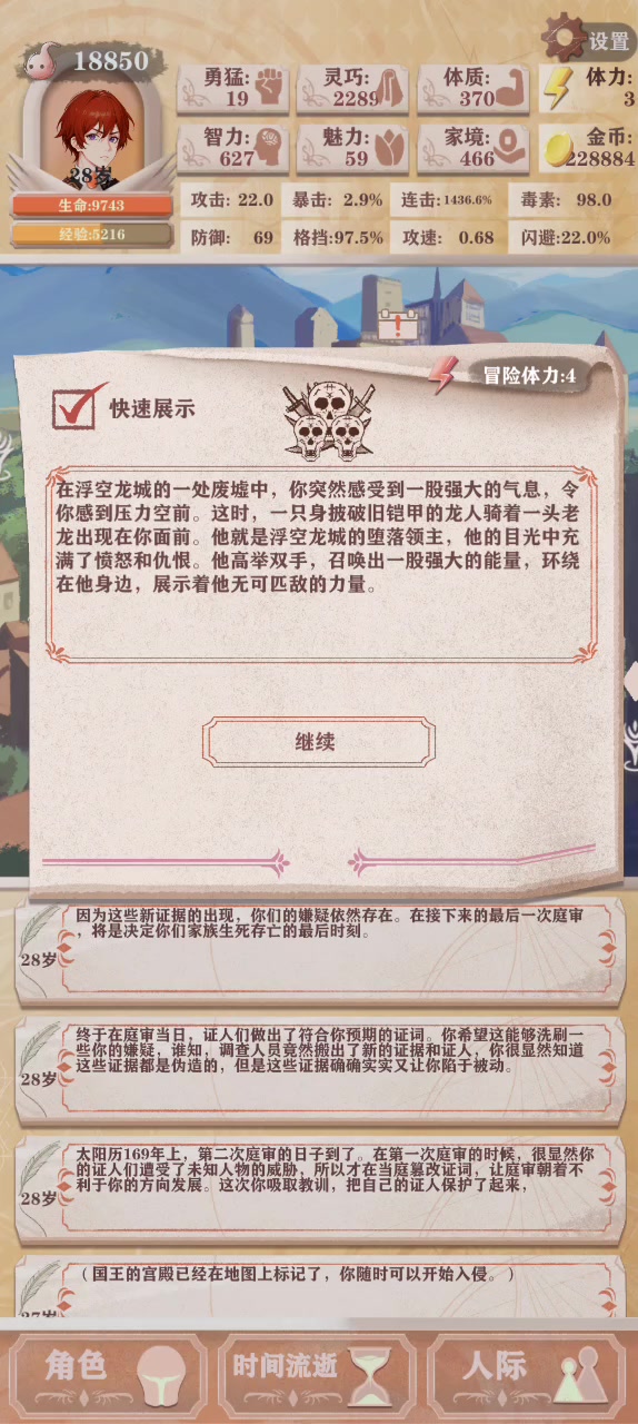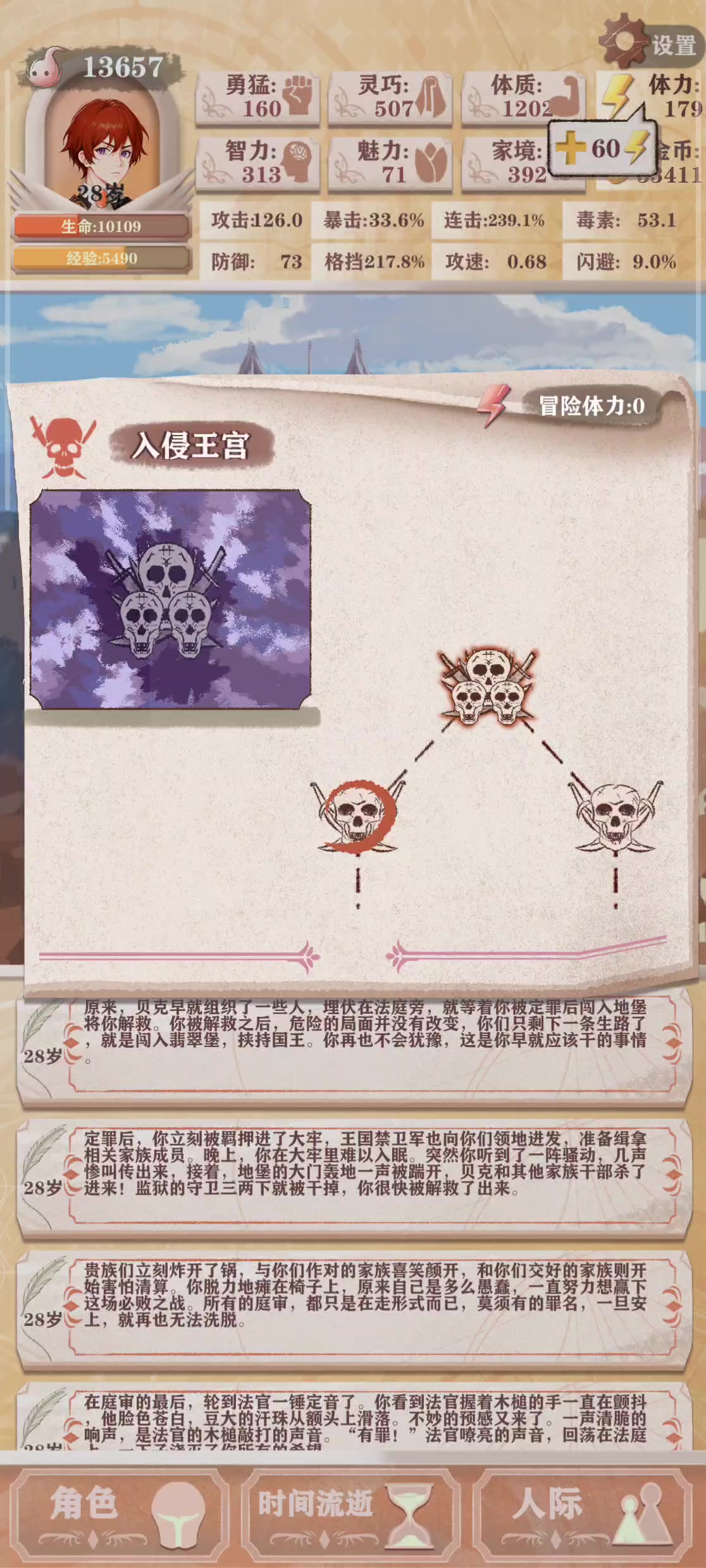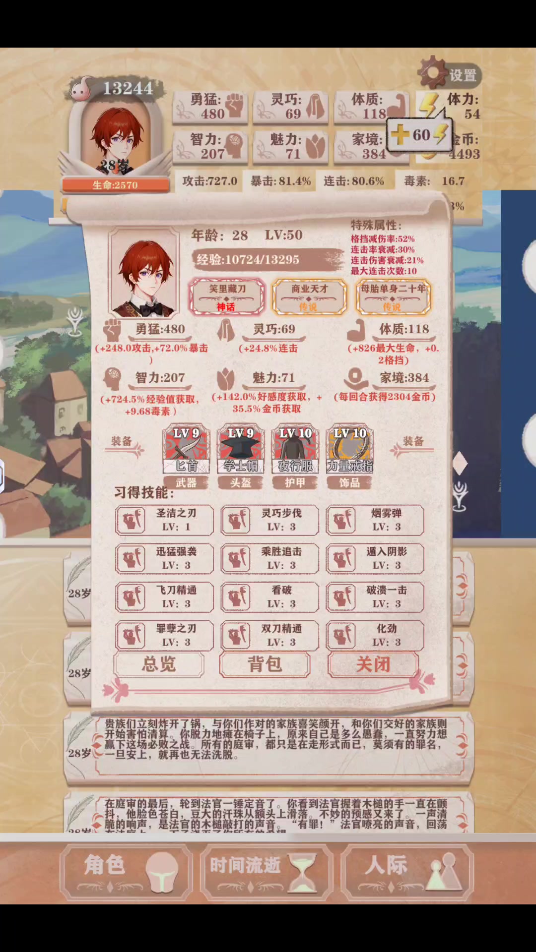 带的失眠患者和两个加毒素的红天赋,贵族还真是简单 没有买一块田地 前几个恶兆也没跑商 直接从家里用完体力就去买涨价的然后就下本 结果通关了