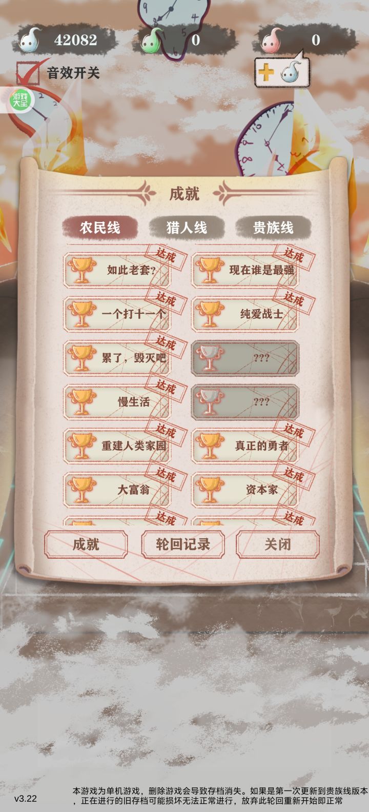 当时忘截图了,就是猎人线1岁时猛猛睡是不是会梦见上一世。昨天打完农民残6开了把高光环猎人,开局九连睡出发现的。一共四段,第一段说梦到一个莫名熟悉村庄+1智,第二段说到村庄里走+1智,第三段说在梦境里穿透了一个村民的身体发现自己是个灵体+1智,最后一段说梦见一个少女出来对我说话,但无法听见说的内容+4智。今天打猎人线刷不出来,我猜和上一次游戏玩的那条线有关兄弟们,谁来验证一下?#异世轮