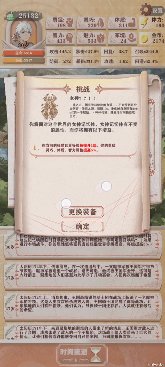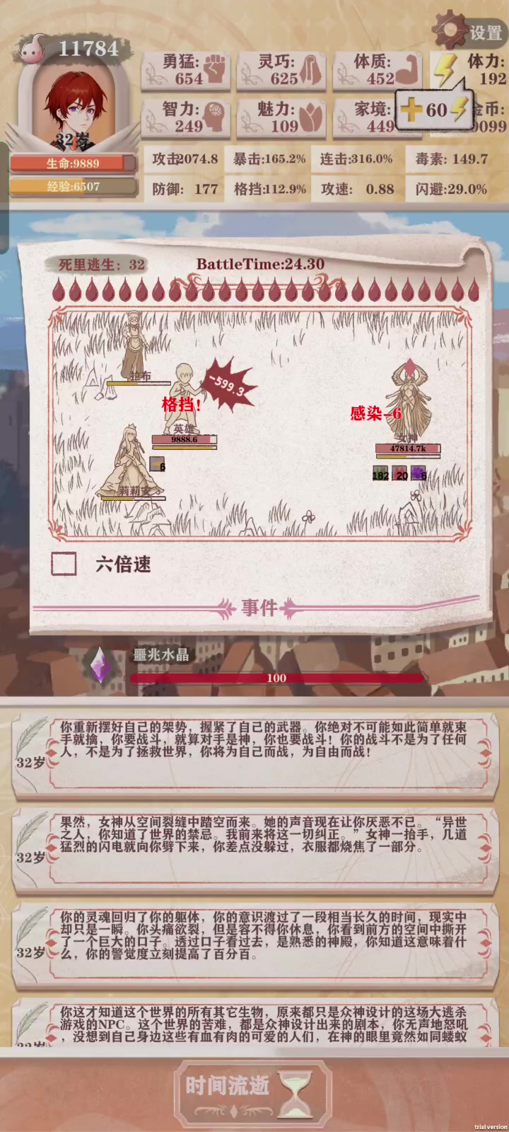 本来以为等残三的时候拿到创业家才打得过,结果就是在残二尝试营销,以及尝试打女神,有一说一,圣洁回血确实猛,成功把女神刮死了,而且论坛里的大佬也确实攻略做的很全面,手把手教怎么过,玩爽了