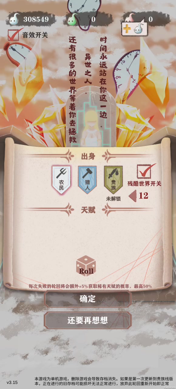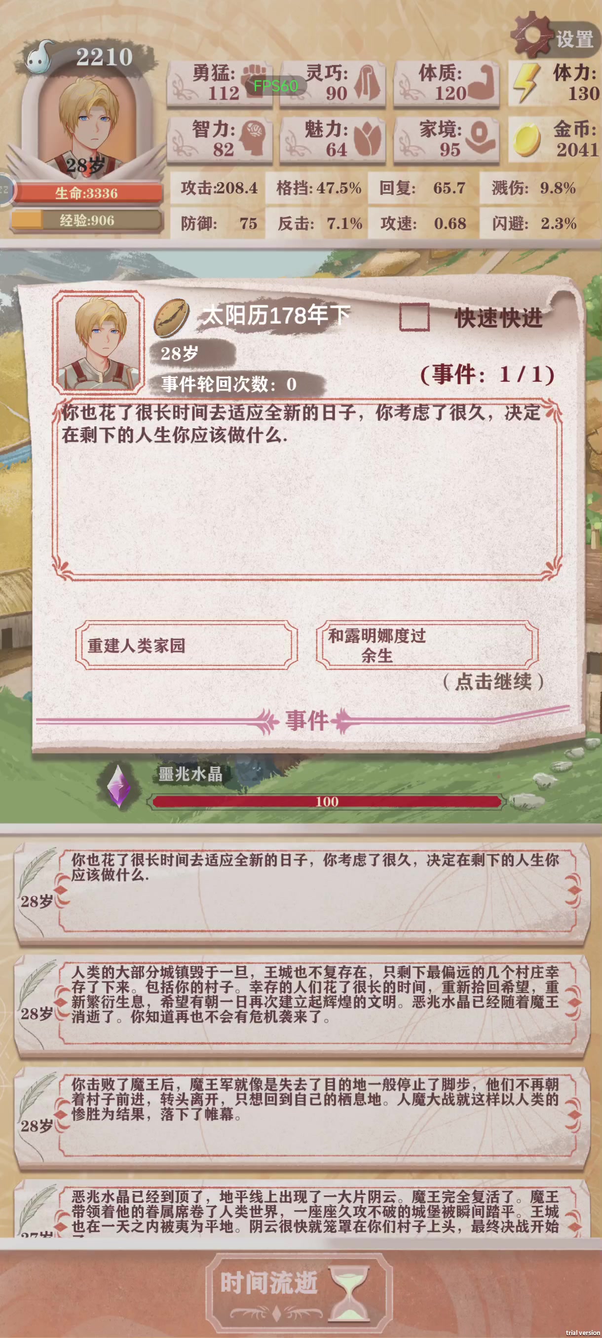 难度残酷8,天赋未来视,独行侠,愈勇,攒够下降后的闪避够90%就行,回复差不多五十比较好,别拿闪避强化,毒,还有杀怪加攻击的,黄金套。属性点开始先过54智力升一级吧,然后差不多每回合都跑酷两次,赚赚钱,神器那个闪避眼睛,还有闪避加回复的拿了比较好。技能优先闪避,然后回复的,差不多就这样。