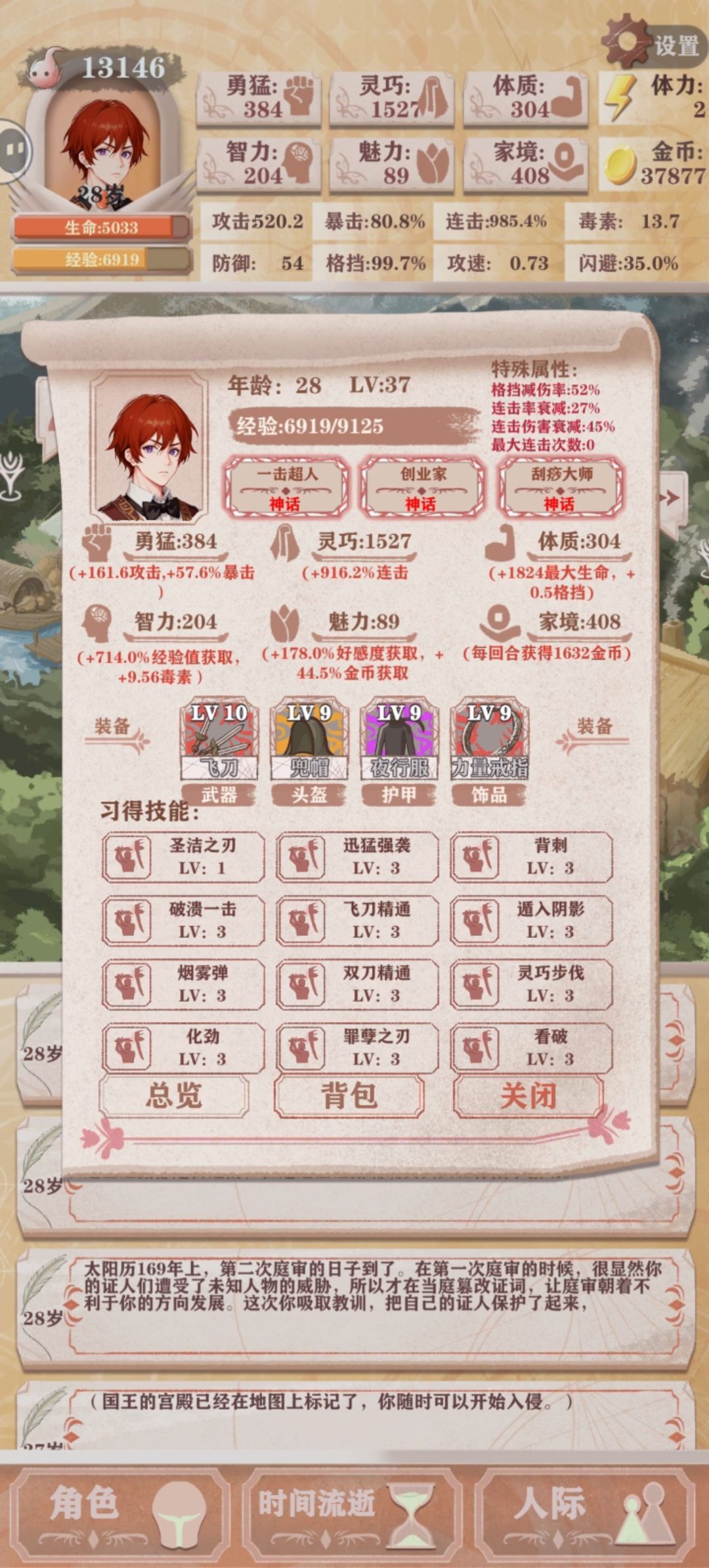 一刮创虽然前期很牢(中间无数次被怪打死回档…) 但是有钱起飞后真的见什么秒什么,无伤龙领+主教的含金量(虽然只是残8),而且因为鹿皮王城一开就有,所以可以很早就开始营销。 关于智力,我觉得不是取决于到多少,而是到什么时候,大约打兽人前就可以停了,后面发挥作用次数越来越少。 关键一点,一定要学会投资盔甲魔晶,这个是前中期赚大钱滚雪球的开始。投资技巧:都是2000以下然后趋势还是跌的时候不要怀疑直接投