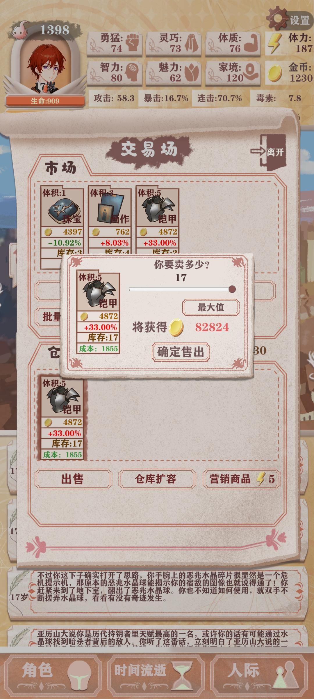 最后魔王那轮直接乱上装备了,还是稳稳过魔王,首先允许我向爆裂魔眼磕一个,我勒个超绝四阶爆啊其次恶兆三确实难过,甚至恶兆二也难过,我恶兆二暴击150%,恶兆三250%才过的,智力每轮25体三次拉满,勇猛射箭看剩余体力,射到40体就停,大头还是通过sl勇猛鸟来拿,勇猛千万不能低着重说说恶兆三,众所周知高残一刀流过了恶兆三就通关了。不点献祭,小动物挡刀确实有用,没点分裂箭,存多点钱,